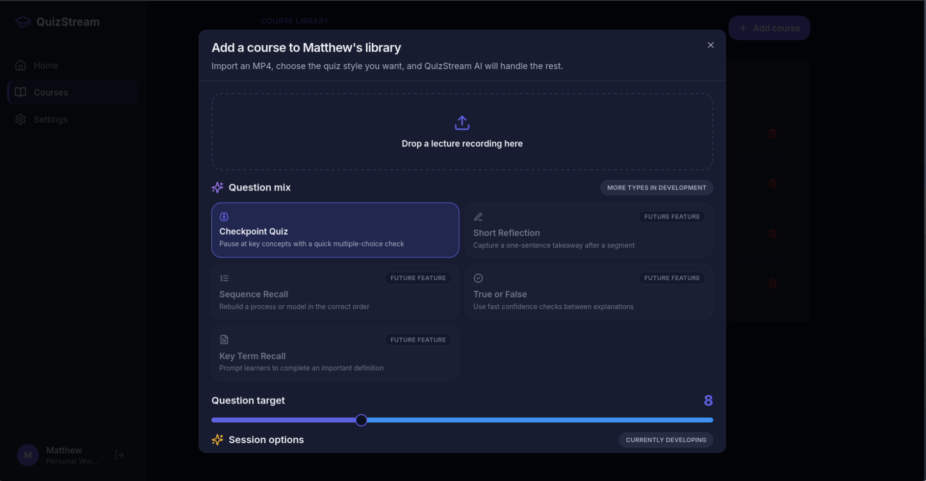 More interactive quizzing features beyond just multiple choice, longer form content capabilities, and to gamify it to give users more incentive to engage with their lectures.