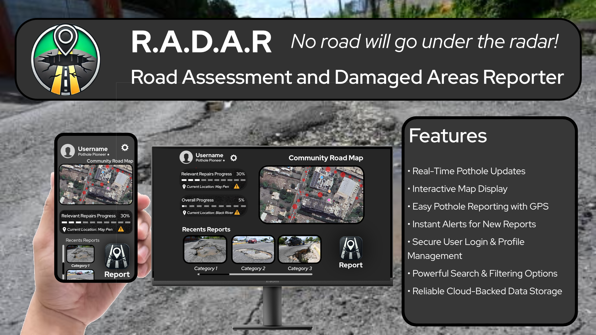 • Allows users to quickly report road damage with precise geolocation data.