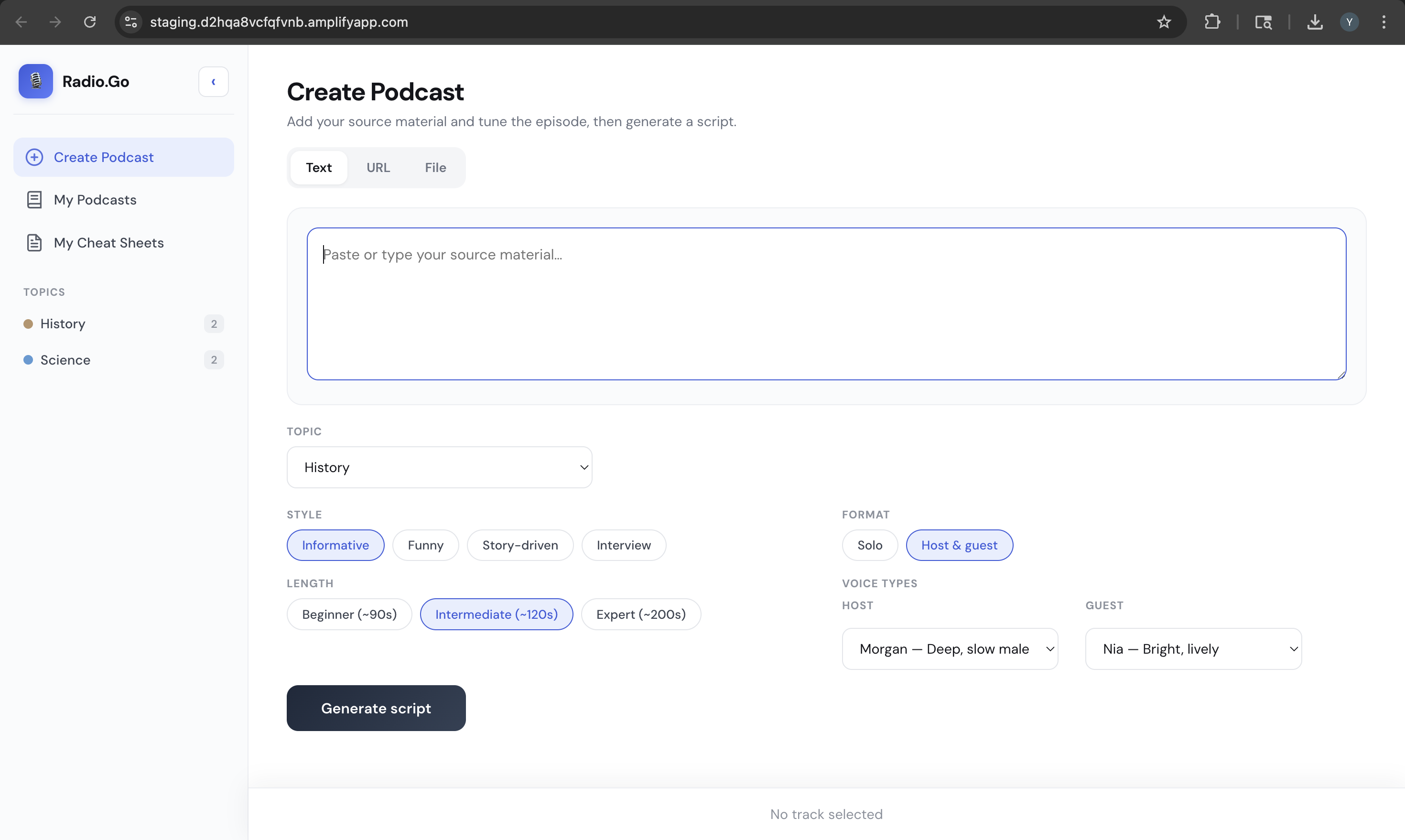 We plan to introduce multi-voice synthesis to make the podcasts sound like a real conversation between two hosts. We also want to implement real-time streaming, so users can start listening to the first "chapter" of their podcast while the rest is still being generated in the background.