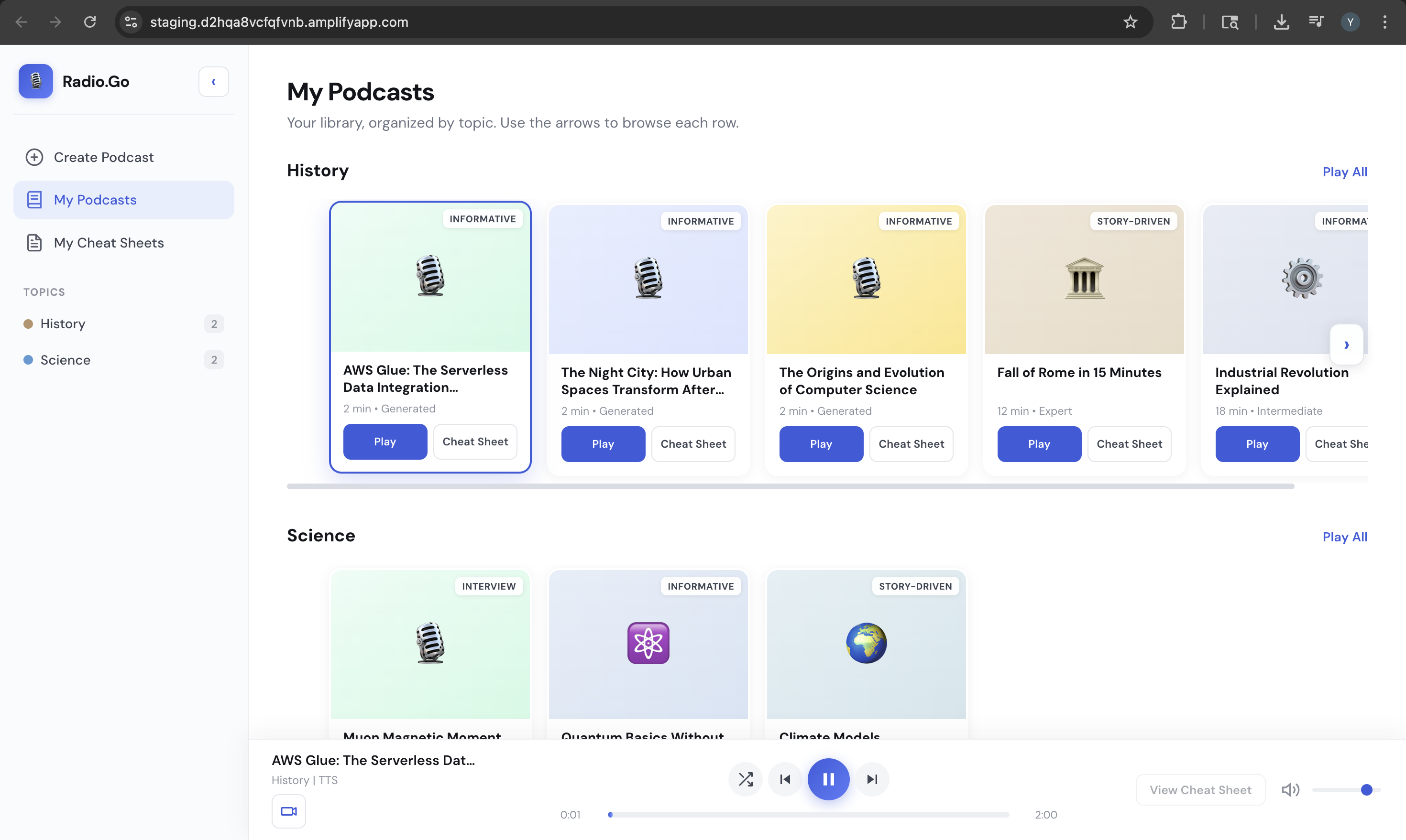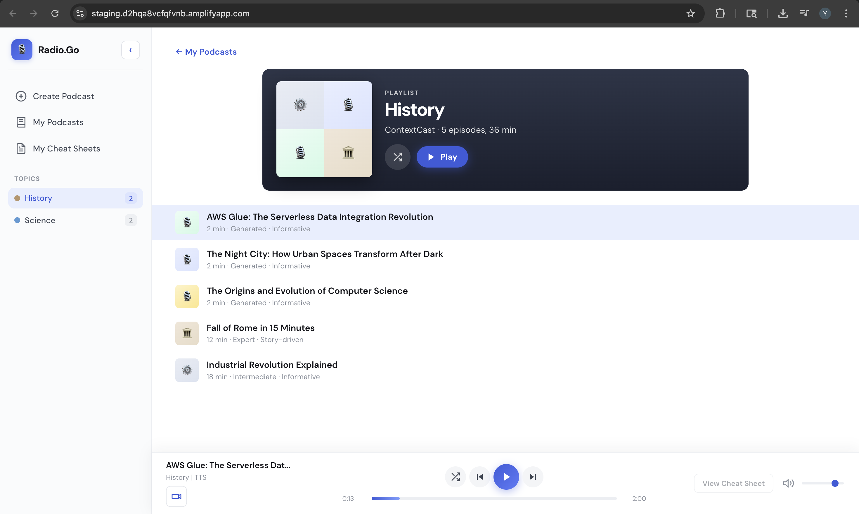 One of the primary hurdles was managing the asynchronous nature of audio generation. Since generating high-quality audio takes longer than generating text, we had to ensure the frontend could efficiently track the progress and retrieve segments as they became available. Additionally, tuning the prompt for Haiku to ensure the script felt "conversational" rather than just a summary required significant iteration.