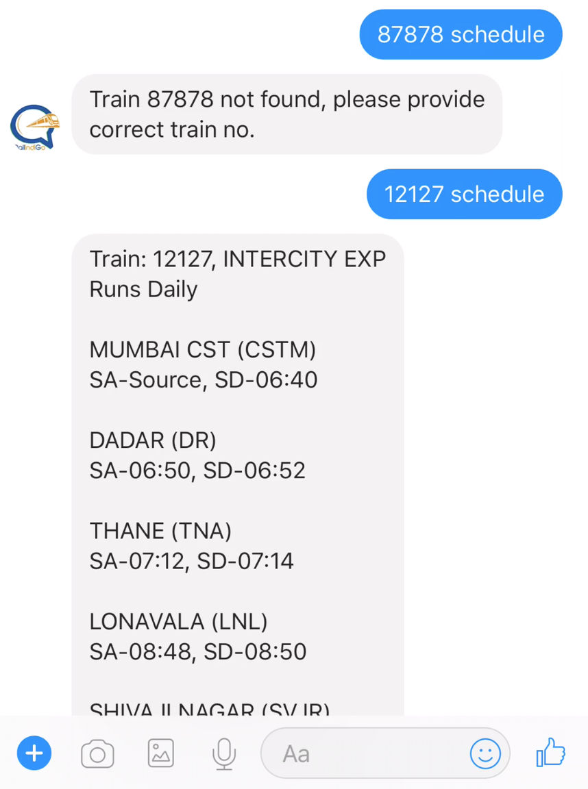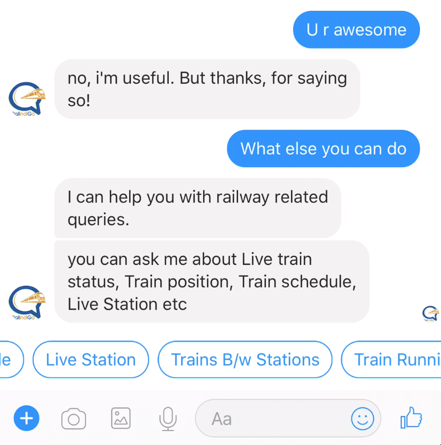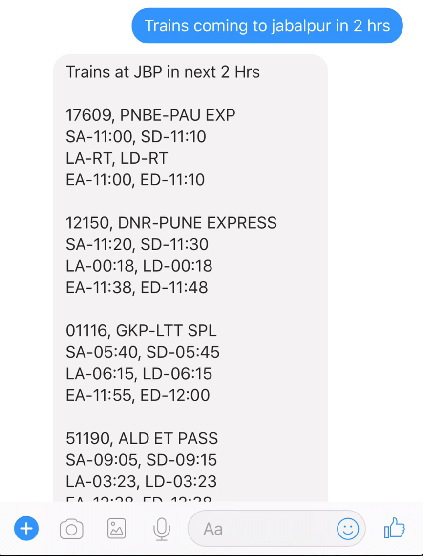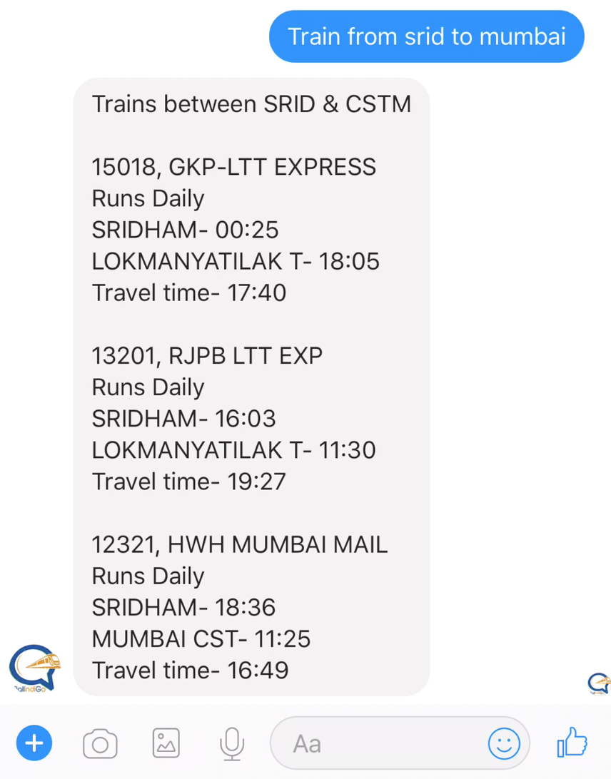Here, RailindiGo comes to the picture. It is India's first personal Railway assistant on messenger which lets you make all your Railway inquiries directly in conversational way.