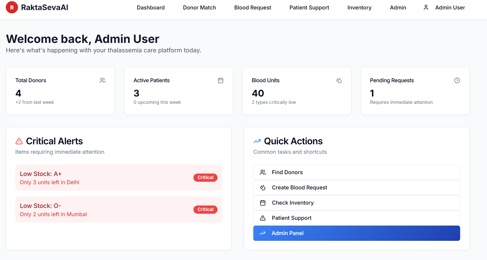 In India, thousands of children and adults with Thalassemia require regular blood transfusions to survive. We kept hearing stories about families scrambling to find donors at the last minute, and about hospitals struggling to maintain adequate blood supplies. The existing system was clearly reactive rather than preventive , waiting until crises happened before responding.