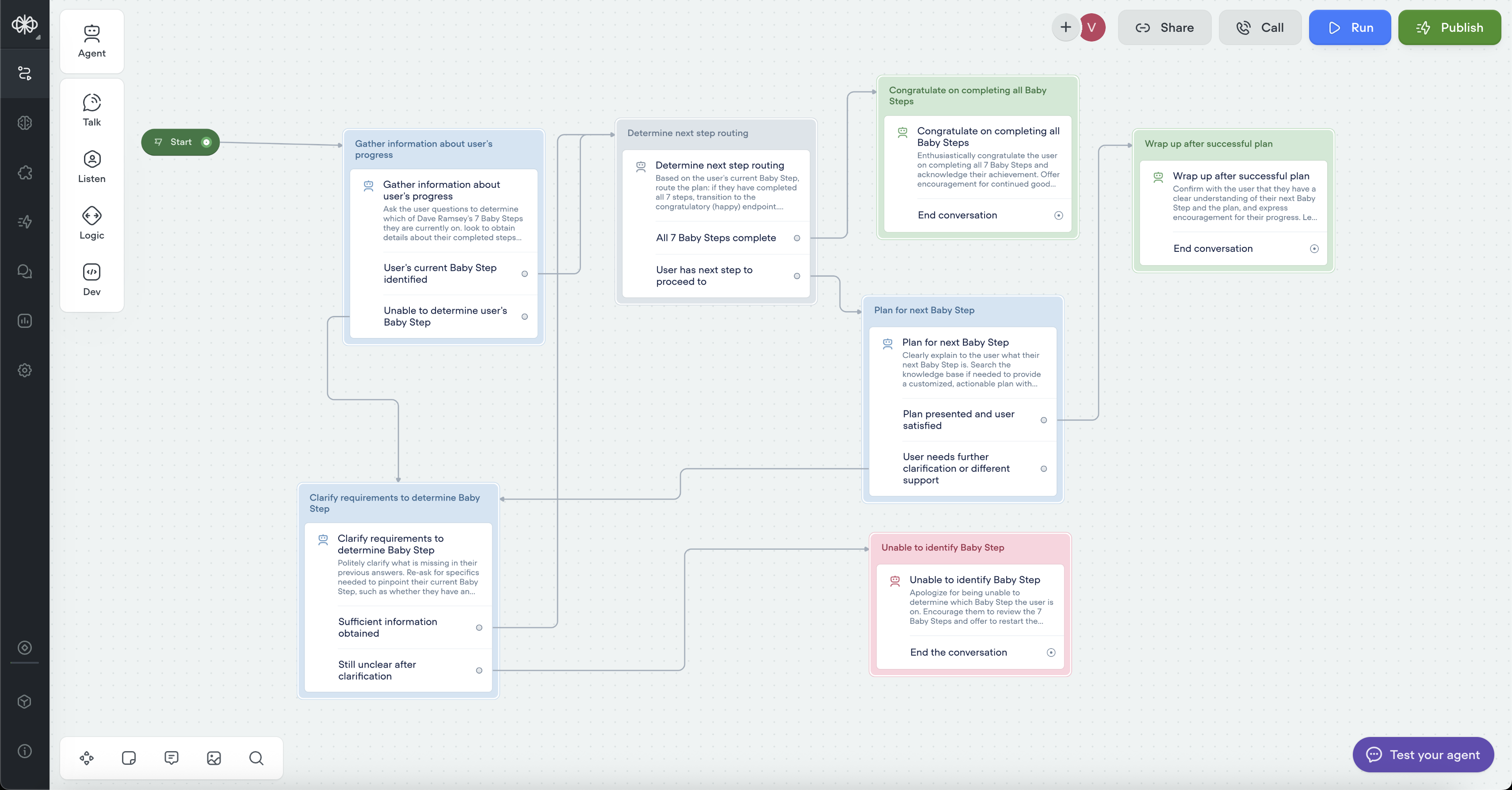 AI Integration: Configuring Voiceflow to provide accurate financial advice aligned with Ramsey's methodology and handling dynamic script loading for the embedded chat widget.