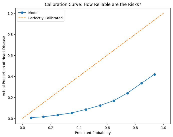 We discovered that a prior stroke history is a powerful "vascular byte," increasing the odds of heart disease by over 1.35x. We also learned that while model calibration is a challenge in imbalanced sets, it provides a more honest look at "real-world" risk than standard accuracy scores ever could.