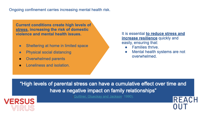 The inspiration for Reach Out is to find an immediate and effective way to ease the stress caused by the current social distancing measures. Working parents are struggling to fulfil their multiple roles. Those living alone are feeling lonely and isolated. There is a risk of an increase in domestic violence and mental health issues. We all need emotional and personal connection and support more than ever. Research has shown that giving people the possibility to talk about their problems and concerns helps reduce stress. We all have the potential to support each other by reaching out.