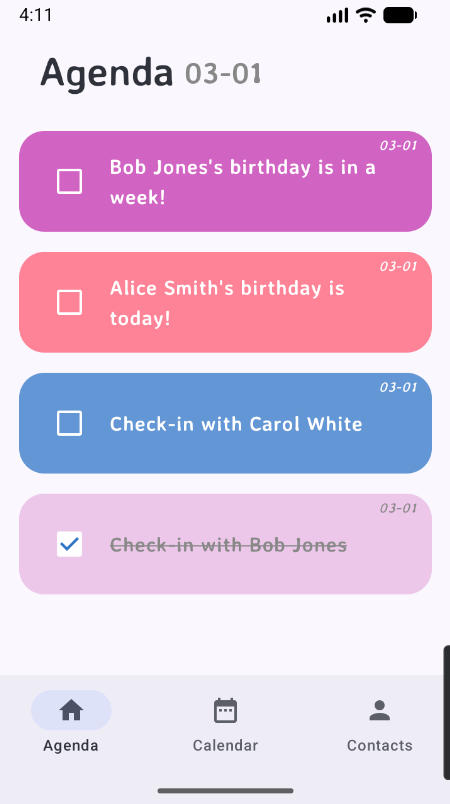 - Allowing users to identify their contacts with secondary tags and customize other types of events (anniversaries, graduations, special holidays, etc.)