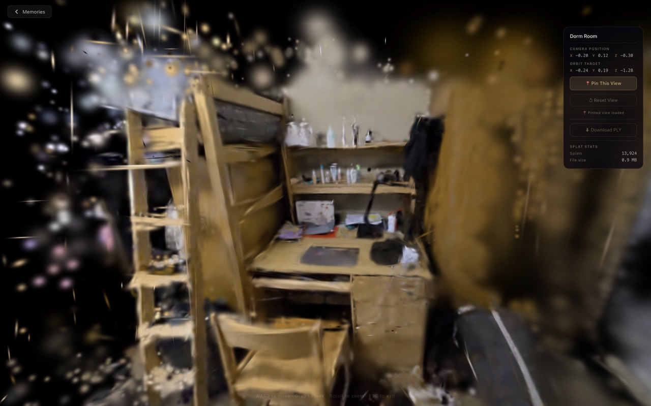 Better reconstruction quality on challenging footage. Mobile capture guidance to help users film in ways that produce cleaner splats. Shared memory spaces so families can contribute footage of the same place from different devices. And longer term: a lightweight export format that works in VR, so you can not just view a place but stand in it at full scale.