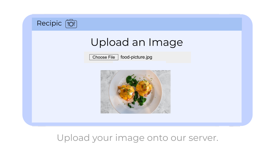 Recipic is a website where users can upload images of food to get recipes of it. To access the website, you must first register or log in. After successfully logging in, you will be redirected to a page where you are able to upload an image. A trained machine learning algorithm will then classify the image and pull up recipes with nutritional facts using API requests.