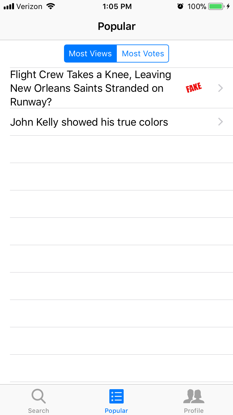 By developing for mobile first, we make the application available to more people in developing countries, since many people in these countries only access the internet on their phone. We also make effective use of the VoiceOver accessibility feature on iOS. This makes it even easier for people with a vision impairment to get information about fake news. However, we recognize that many people still read news on their computer, so we mocked out a chrome extension that warns a user when they visit a website in their desktop browser that has been voted disreputable.
