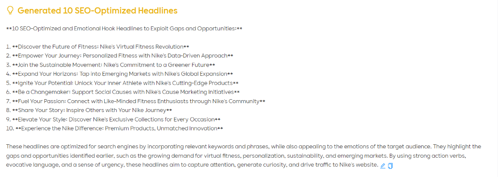 Strategy Analysis Result 3: Content Headlines Suggestion based of Nike's Marketing Gaps & Opportunities