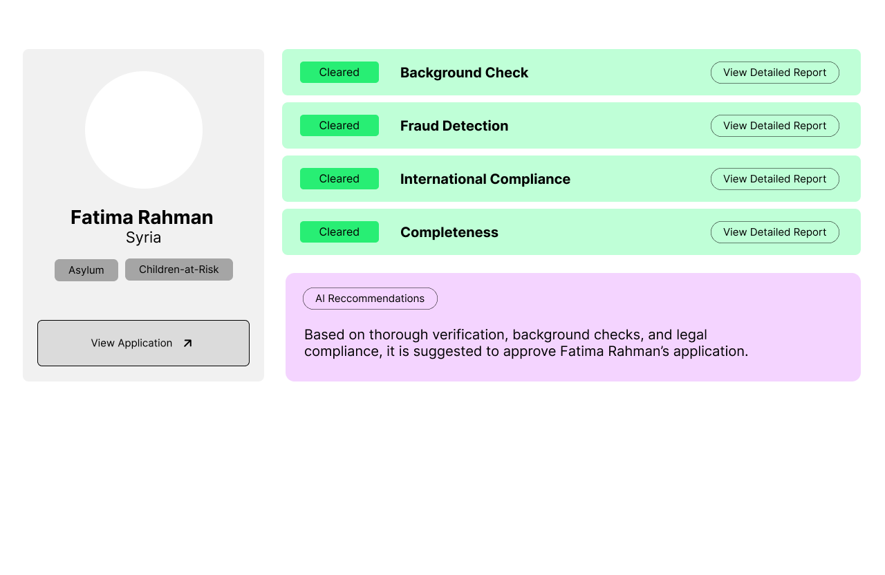 While volunteering at Adam House, a refugee shelter, we saw firsthand the challenges asylum seekers face—long processing times, lack of clear communication, and severe housing shortages due to backlogs. Many applicants wait years for a decision, leaving them in legal and financial limbo. This experience inspired us to create an AI-powered solution that enhances efficiency, transparency, and fairness in asylum processing while ensuring compliance with immigration laws.