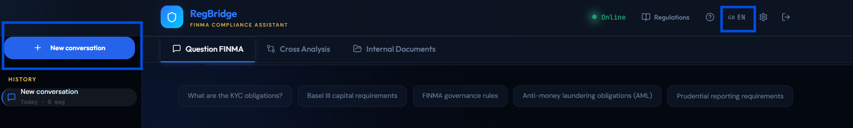 - Ask any question in natural language (FR, EN, DE, IT) about FINMA regulations