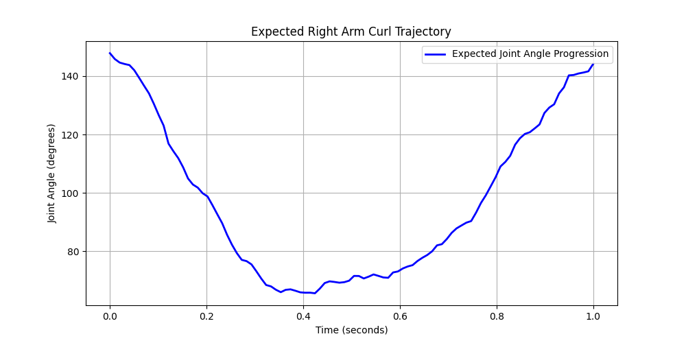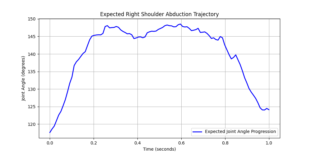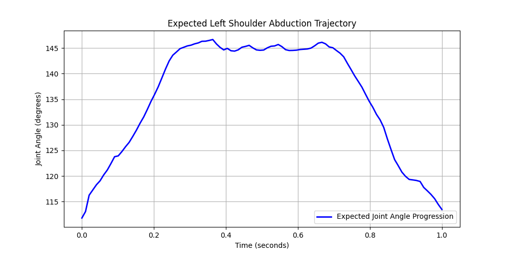 One major challenge we faced was finding an effective methodology to create our ground truths. We deliberated between different approaches including exploring learned models and measuring progress by positive changes in key angle values. Both of those approaches did not yield effective nor accurate results. We settled on incorporating a timer telling the user when to start a given motion, then give feedback on pacing, as at each clock cycle, the angle of the user's arm is compared to the expected angle according to the data at a time t after the timer starts. this seemed to work relatively well, as we were able to set it to a pace that is easy to follow along with and analyze in real time.