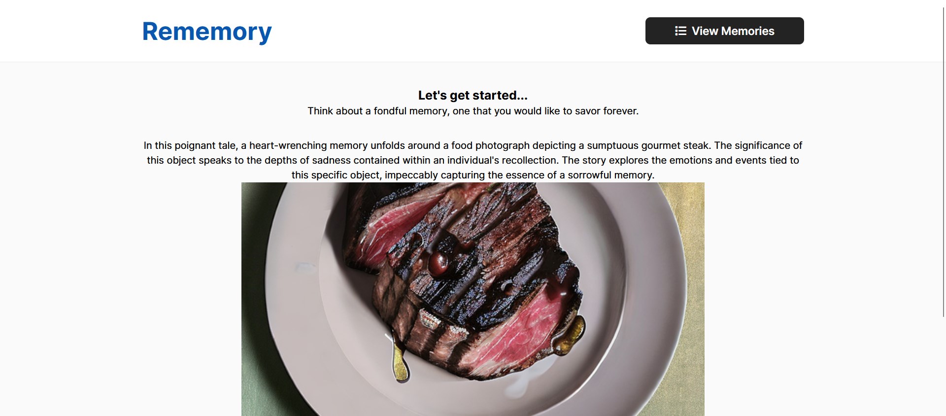 Once you've finished trying to recollect your memory, we use generative AI to recreate a scene that is similar to what you've described. We hope that by generating scenes that are similar to what you've experienced, that, anytime you come back to revisit the website. You can see the image and the caption under it, and remember what lead you there in the first place.