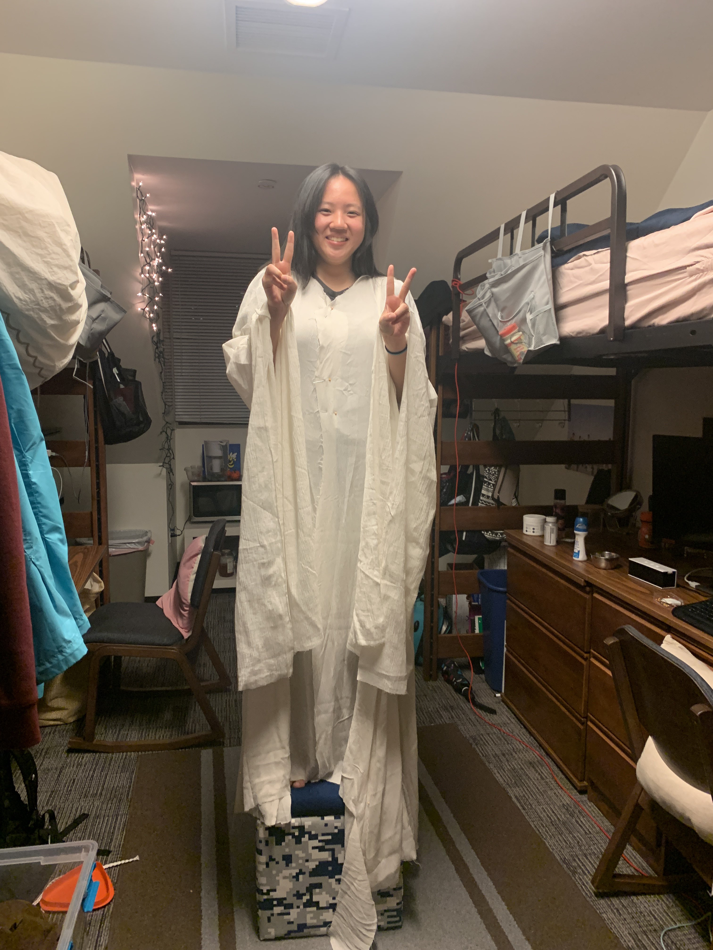 We're proud how we drafted the pattern ourselves and the speed we made the dress at.