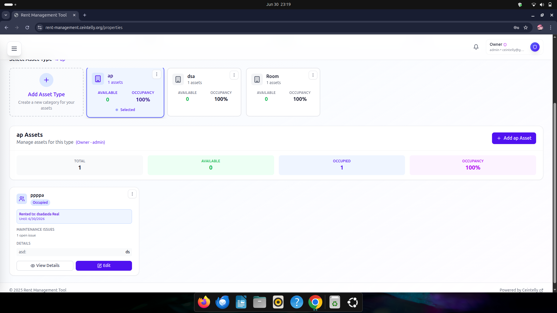 It rental management system. Create assets, renters, lease, and all rental things.