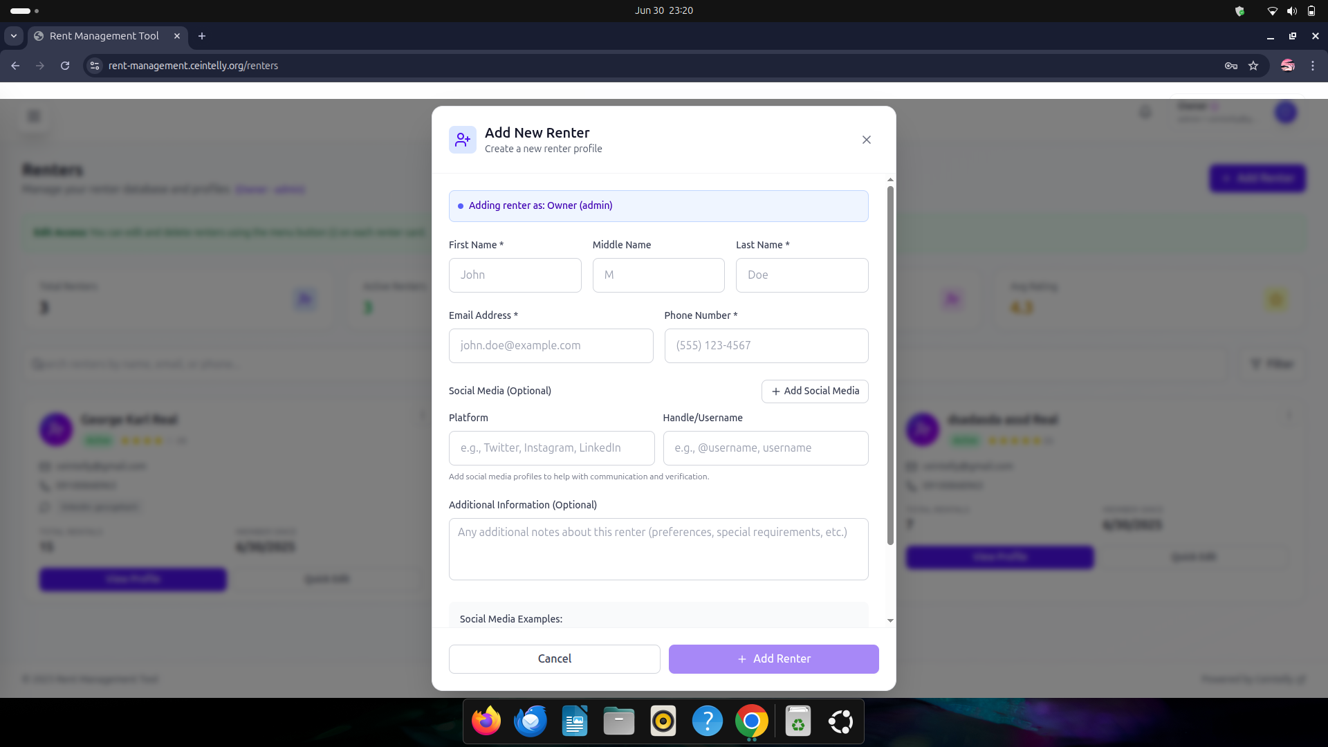 Renters - add