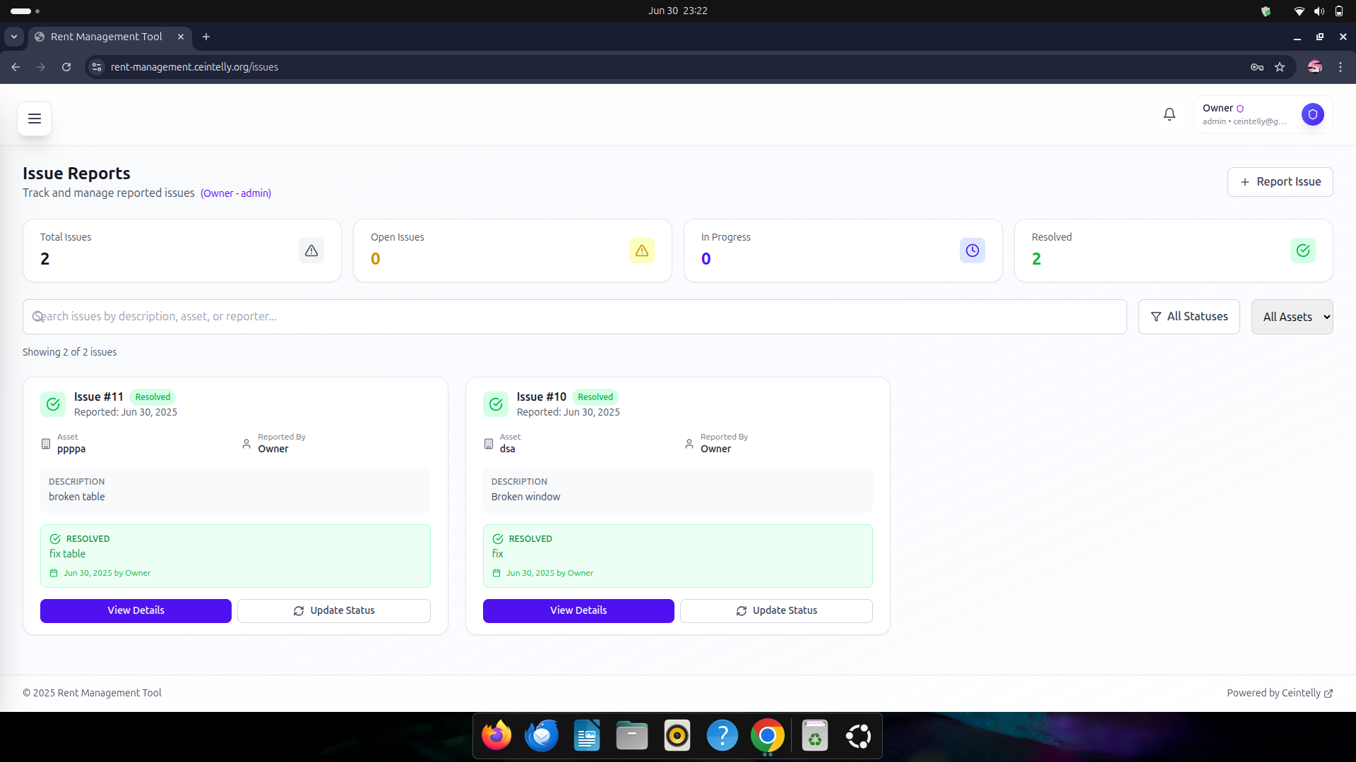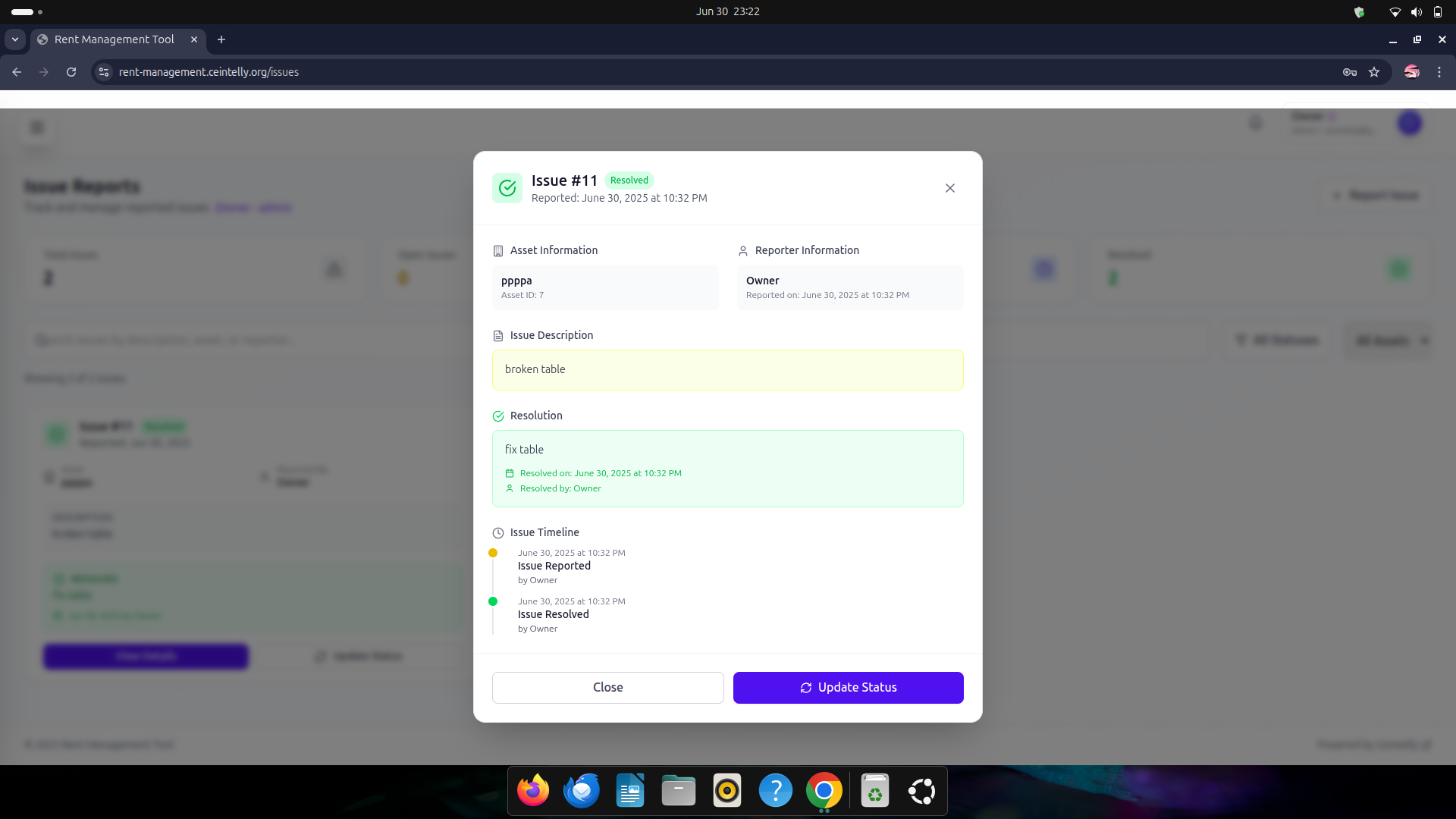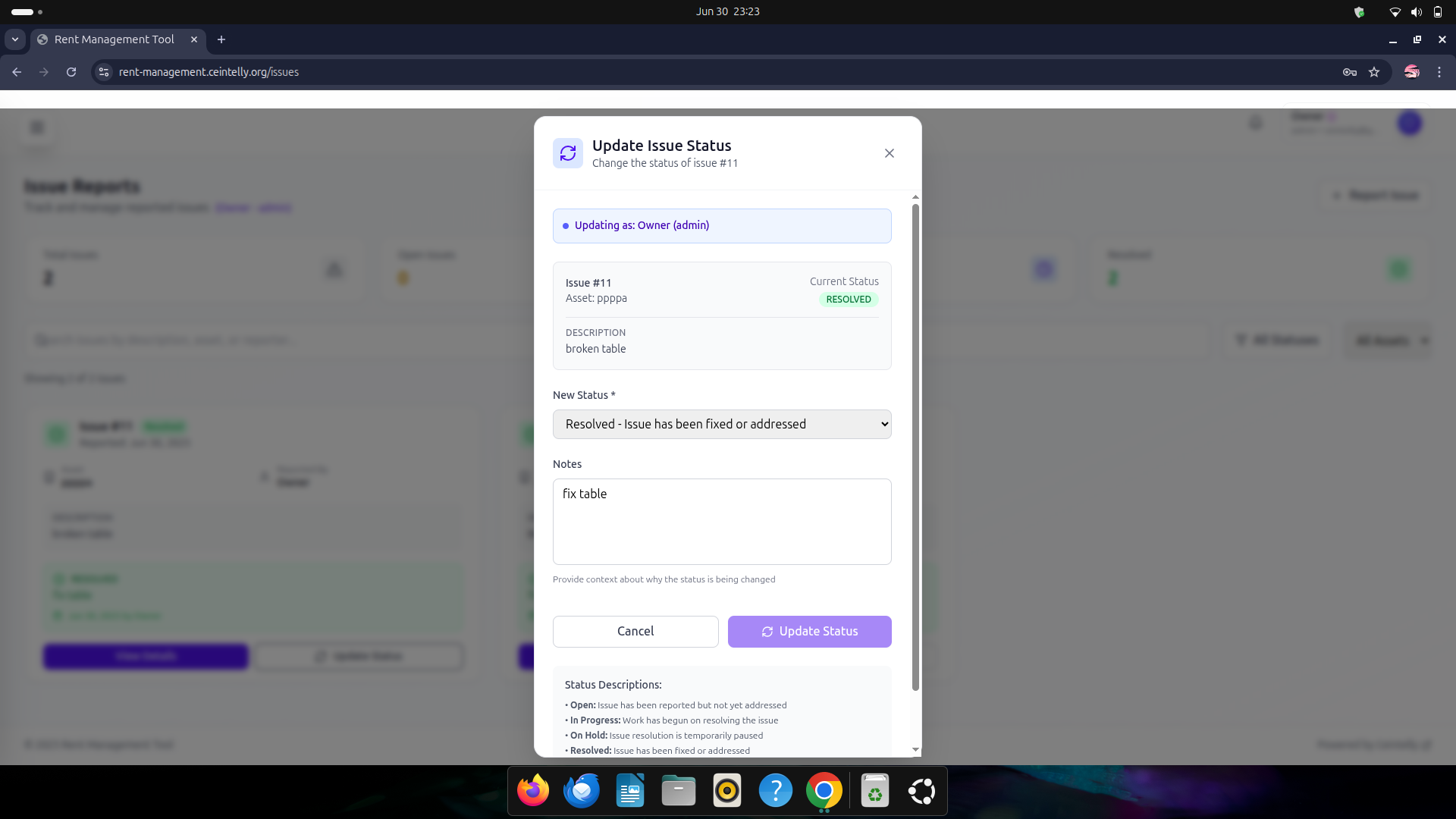 issue reports - update status