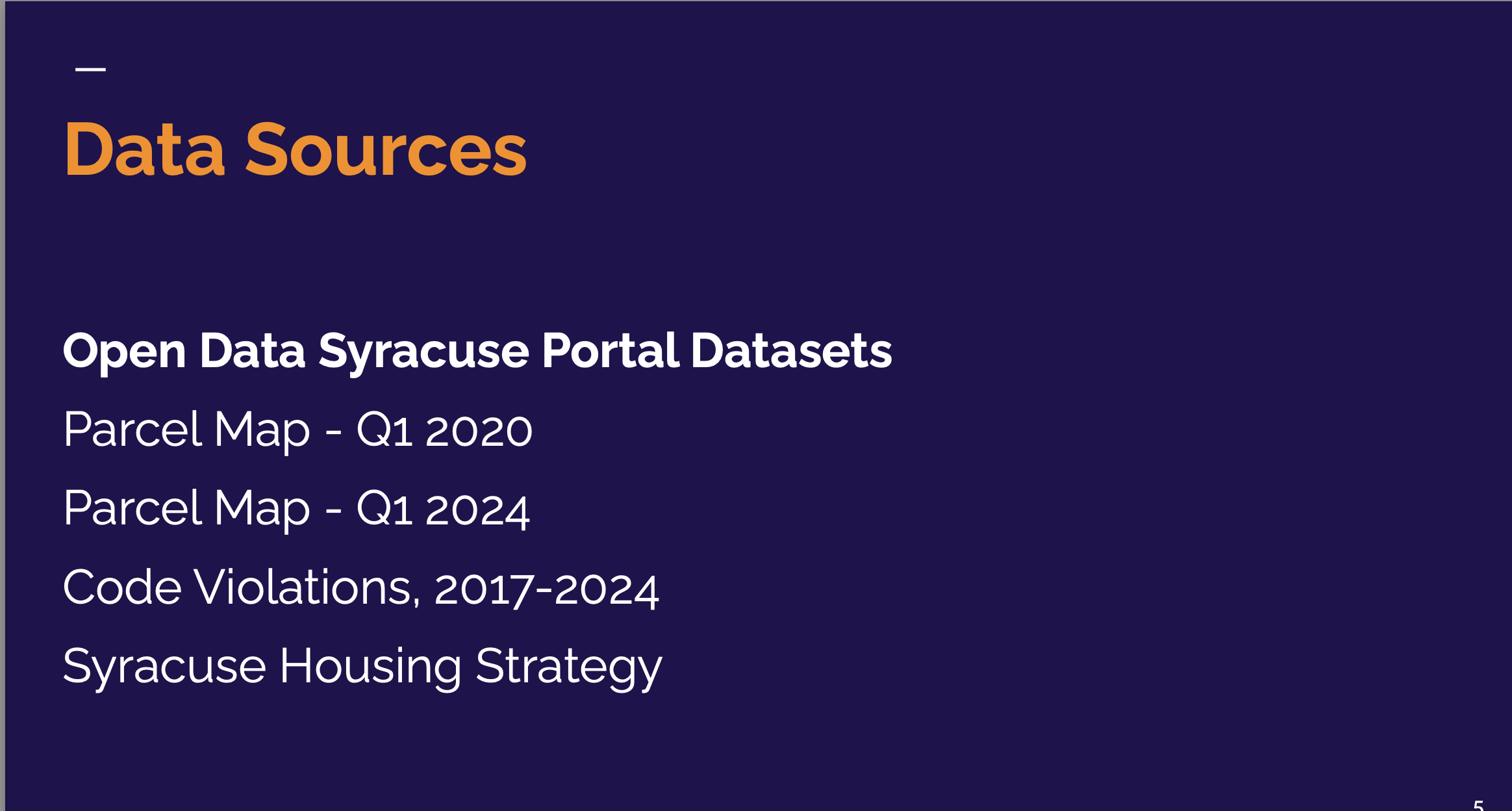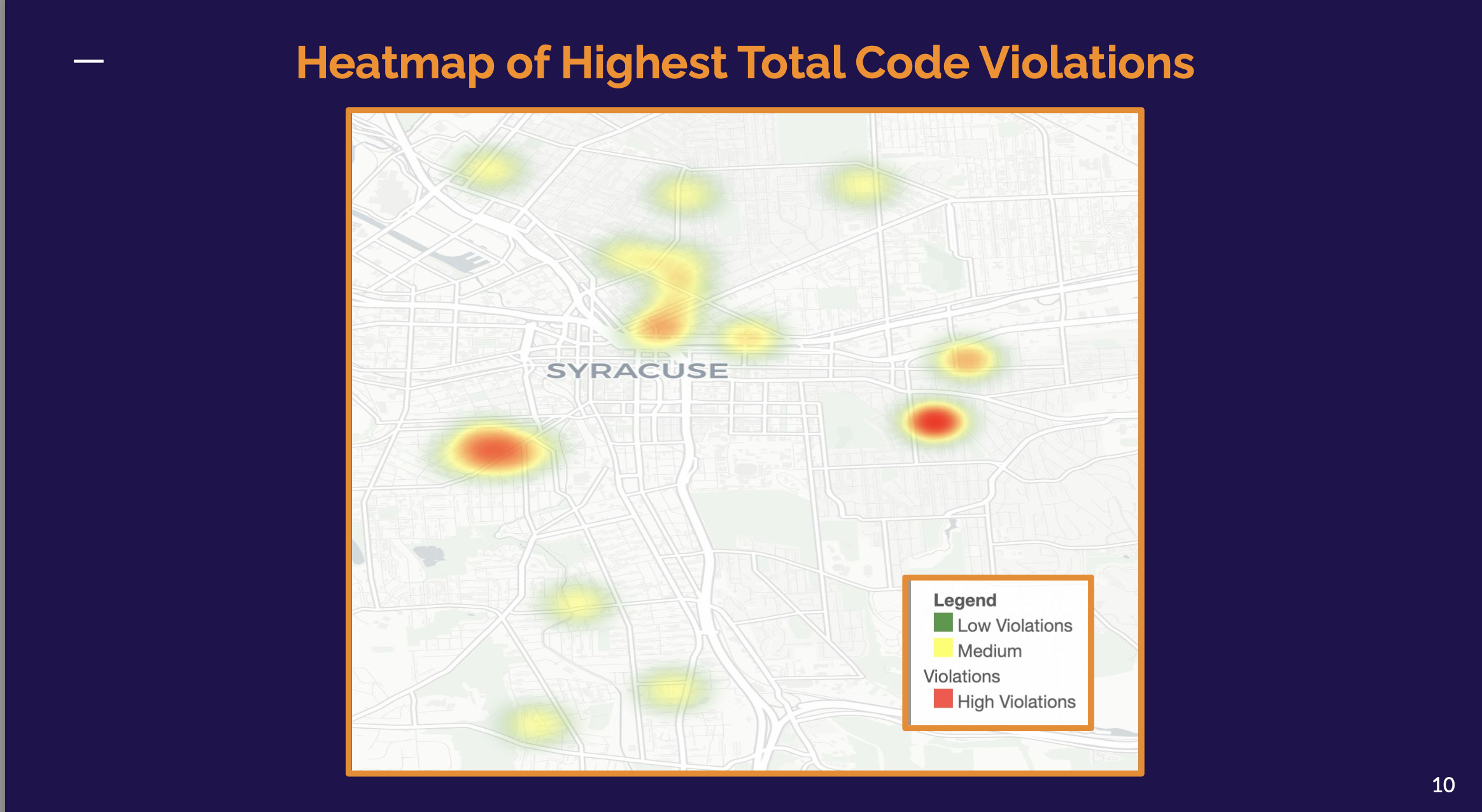 This project taught us the significance of data-driven decision-making in addressing complex social issues. We learned how to utilize Python for data analysis and visualization, and we gained practical experience in interpreting data to inform actionable recommendations. Additionally, we developed a deeper understanding of the housing landscape in Syracuse, particularly the challenges faced by tenants in neighborhoods with high concentrations of absentee landlords. This knowledge reinforced our commitment to advocating for tenants' rights and the need for targeted interventions.