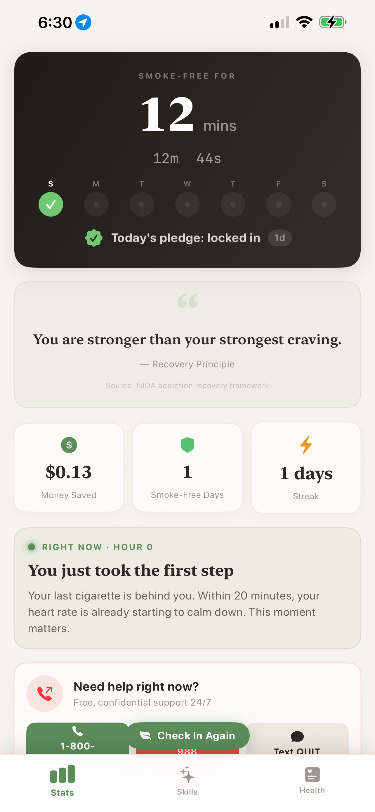 - Dynamic Island Integration: Persistent tracking of smoke-free time and rapid access to help centers.
