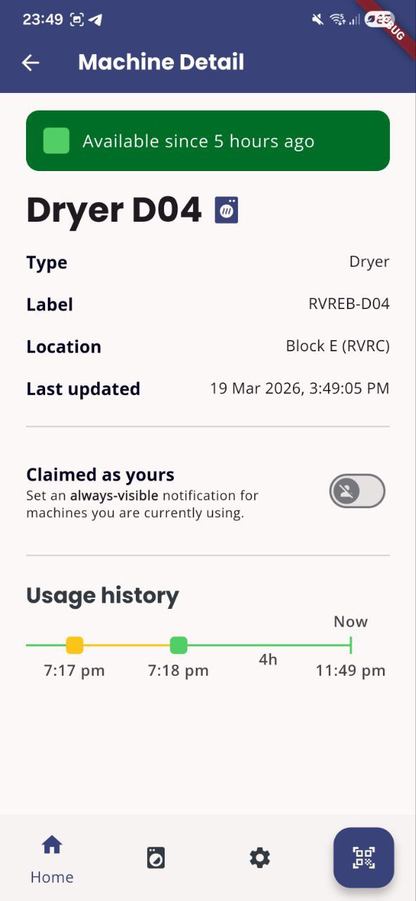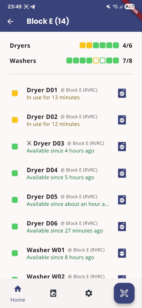 However, due to our approach to go with a native app, we get access to a tremendous amount of functionality. For example, we can integrate directly with and start phones' system timer (Android, iOS 26+, <iOS26 uses Live Activities). This allows residents to have a persistent visual reminder of when their laundry will be done, rather than opaque messages every X minutes. Additionally, we can use NFC tags that directly claim a machine, eliminating the need for QR code scanning (though it's available as a fallback) or manual machine selection.