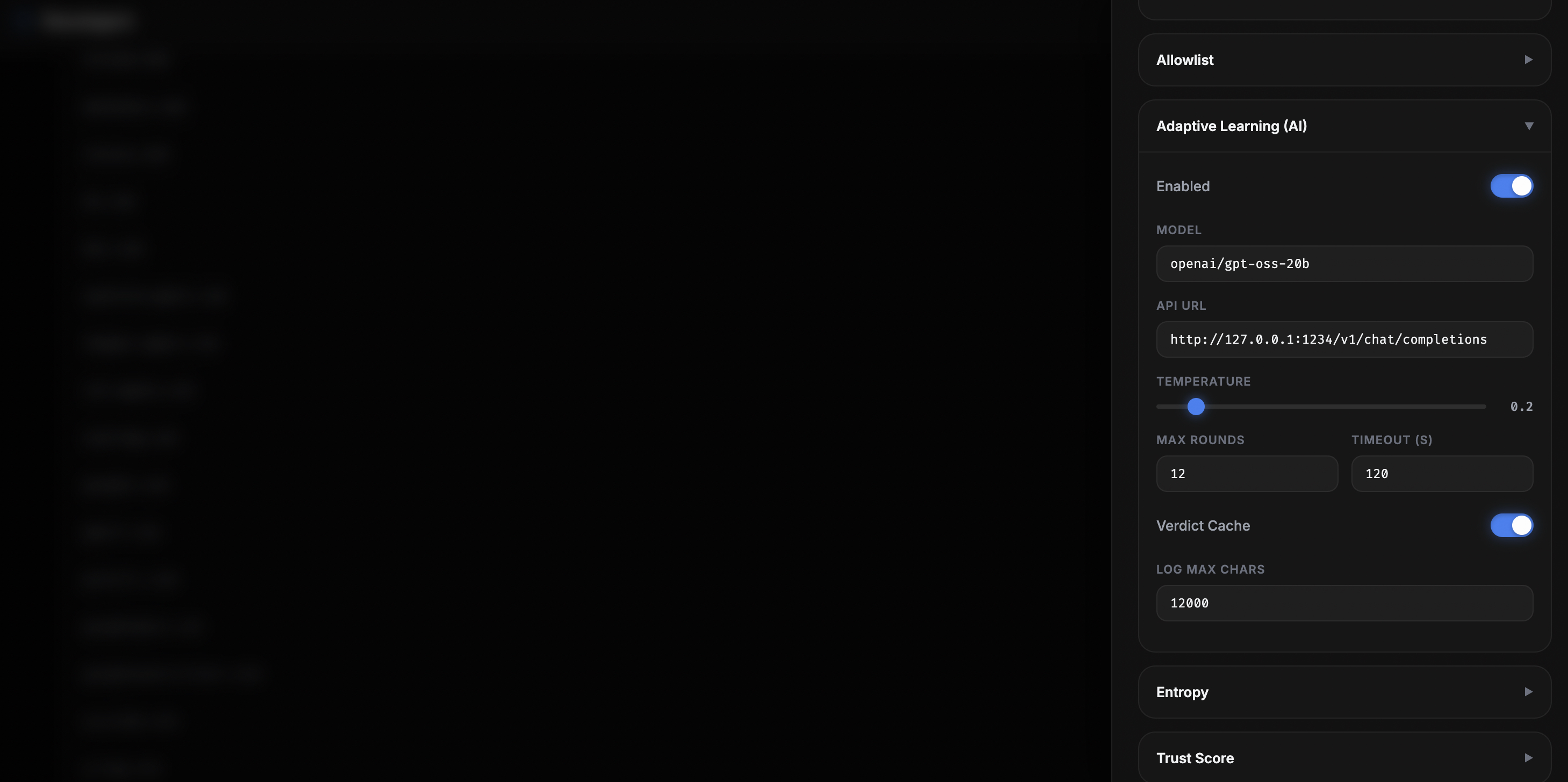 Verdicts are cached per domain and protected by per-domain locks so parallel connections to the same host don't each trigger a full LM session. Domains the AI allows are automatically appended to the allowlist for future fast-path resolution.