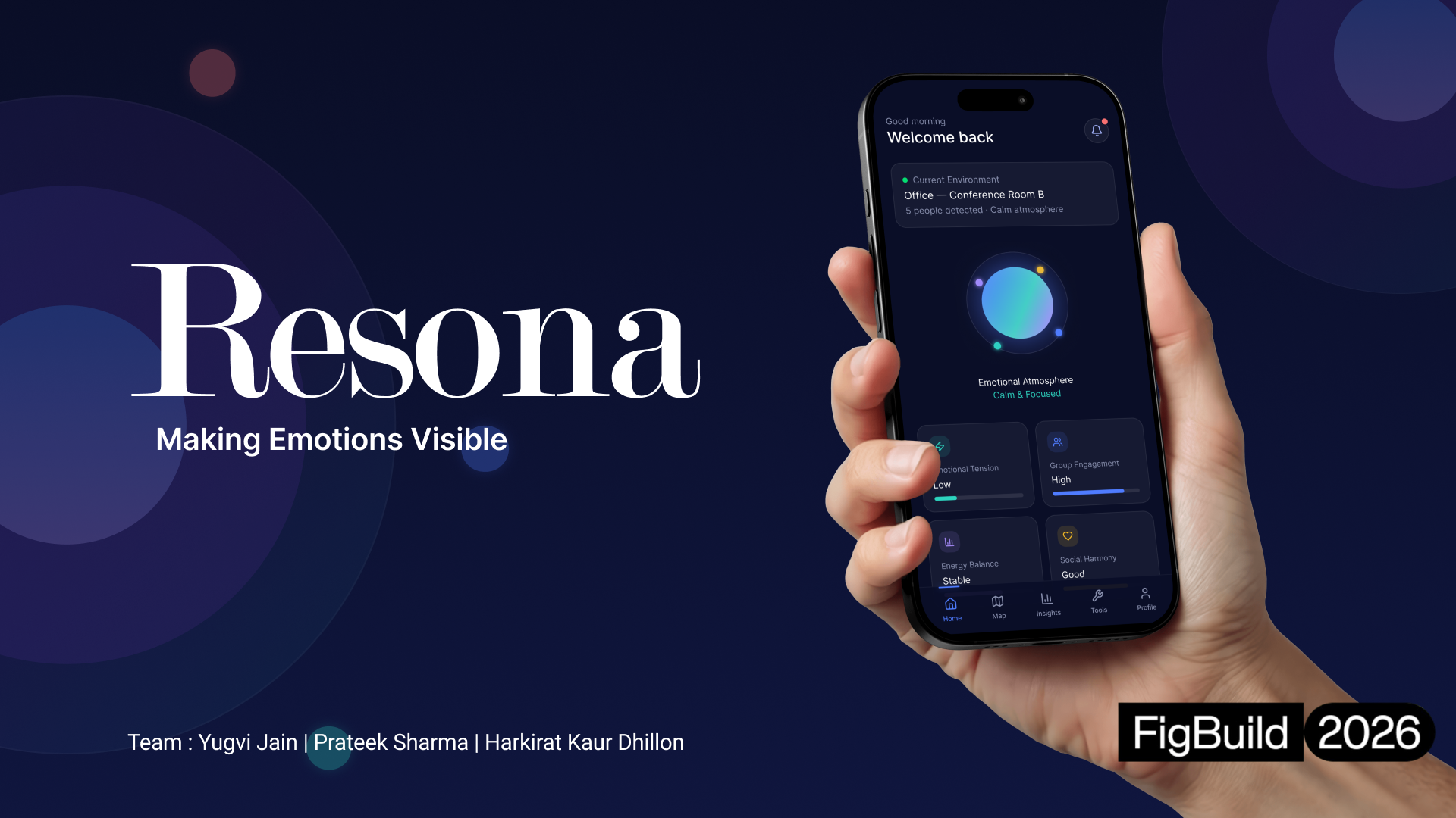 Inspiration Human environments are filled with invisible emotional signals. In classrooms, offices, and social gatherings, people constantly influence each other's mood, energy and stress levels. However, these emotional atmospheres are difficult to perceive and even harder to measure. Our team began wondering: What if emotional environments could be sensed and visualized the same way we track physical health or environmental data? This idea inspired Resona, a system that transforms invisible emotional signals into meaningful visual insights. By combining wearable sensing with a mobile interface, Resona aims to help people better understand the emotional dynamics of shared spaces and make healthier, more empathetic decisions. The goal is simple: turn emotional awareness into an actionable experience.