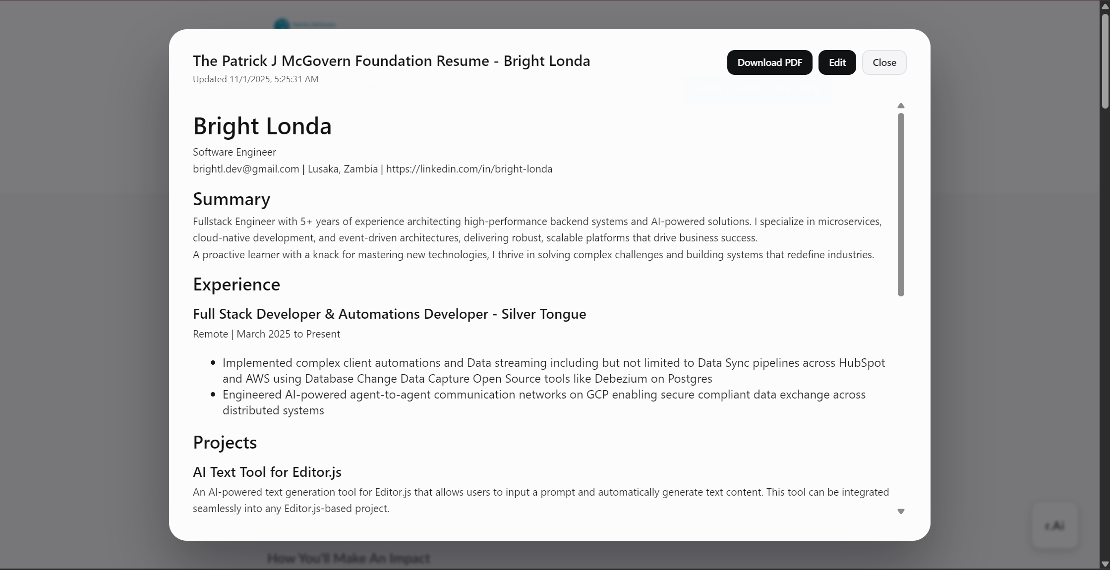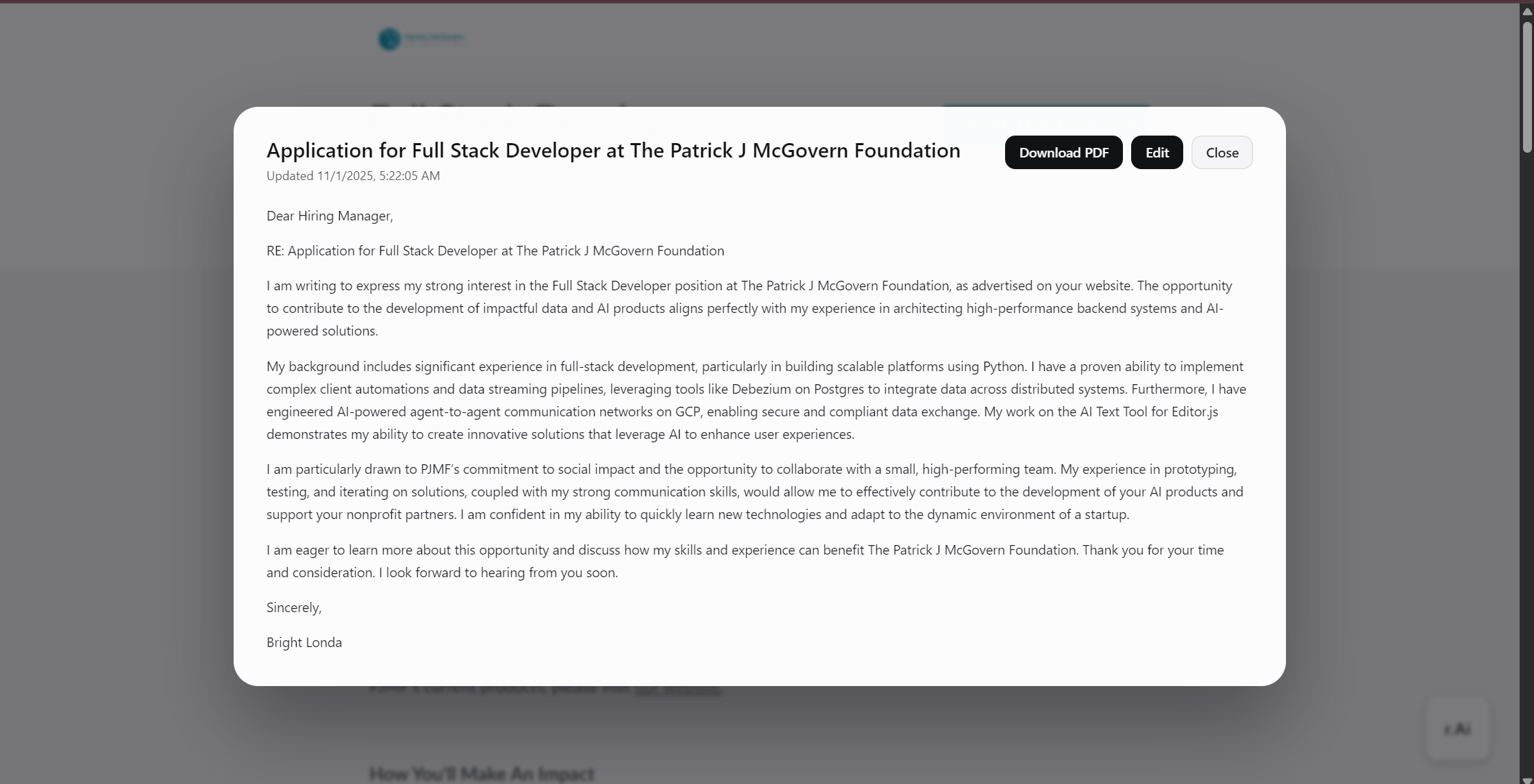 6. Clean, Professional Output with Live Editing Our generated resumes and cover letters look polished and professional. With EditorJS integration, users can make live edits before downloading, ensuring complete control over the final output.