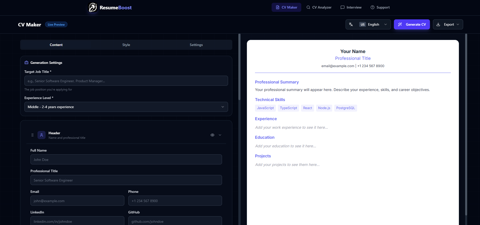 What It Does At its core, ResumeBoost is a career assistant built to solve a very specific problem: people don’t struggle because they’re unqualified — they struggle because they don’t know how to present what they already know.