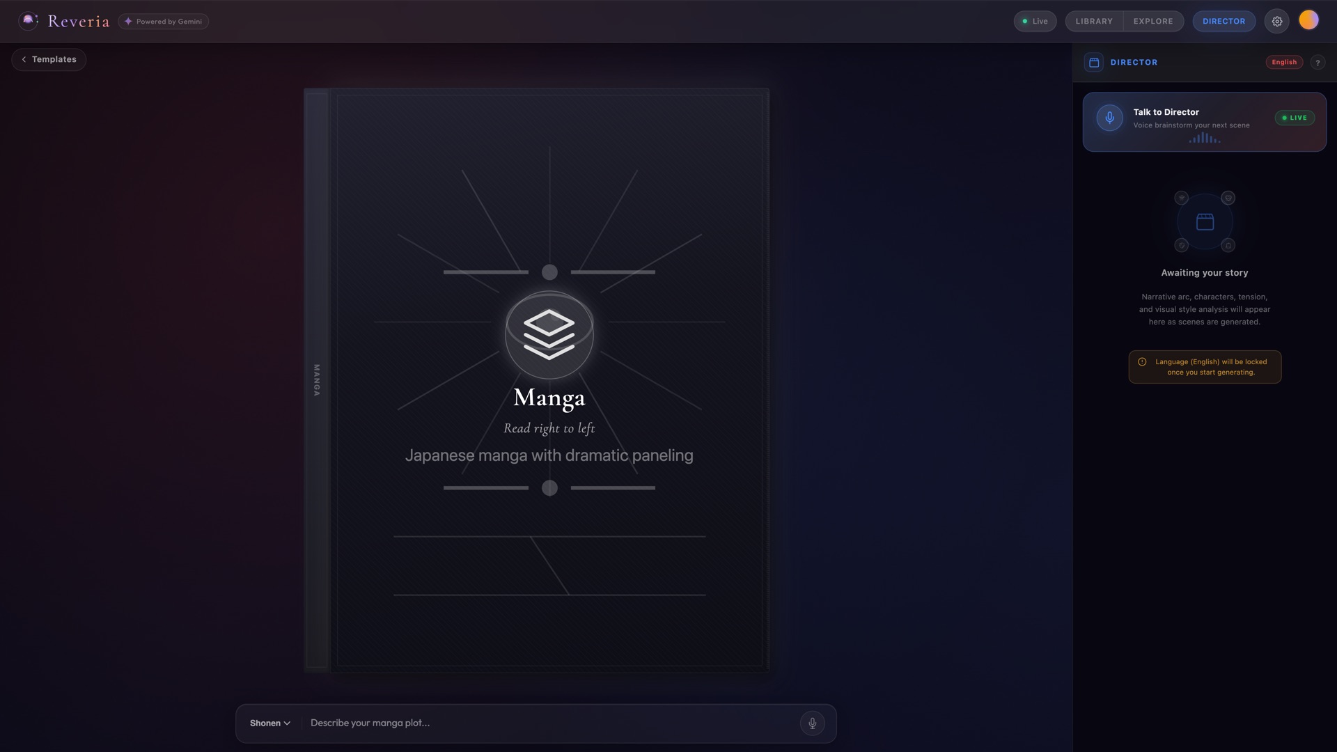 The Director Chat experience. Having a voice conversation with an AI that understands your creative vision, pushes you to think bigger, then watches the story unfold and offers live commentary. The moment the Director spots an opportunity ("Reveal that the stranger is her long-lost sister") and the Narrator runs with it in the next scene - that's the magic.