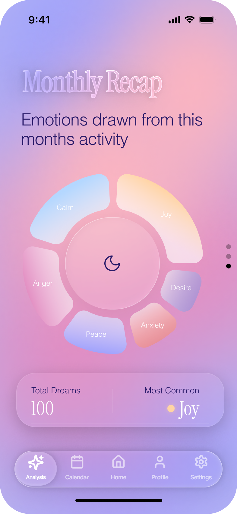 - By visualizing dreams through detailed reports, users may identify patterns and connect to deeper insights and resources through a centralized system.