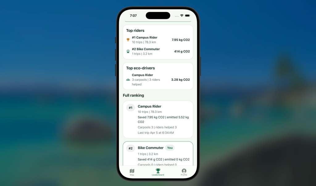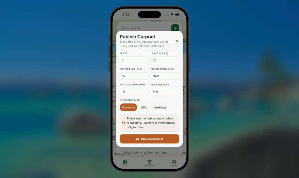 One of our biggest challenges was balancing convenience and sustainability in a way that felt practical to users. We also had to coordinate real-time style carpool flows, route comparisons, and shared trip state while keeping the experience simple and intuitive. On the technical side, integrating map-based routing, trip simulation, and synchronized rider-host interactions required careful logic and a lot of debugging.