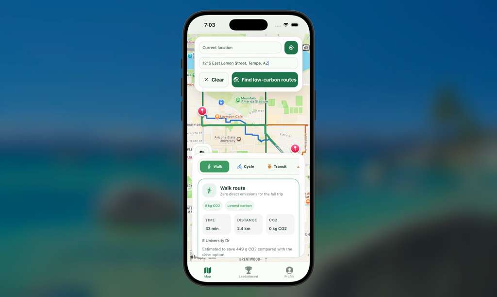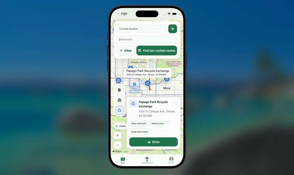 Ride Green helps users compare lower-emission travel options like walking, biking, public transit, and carpooling while showing the carbon impact of each choice. A big part of the experience is making sustainability feel easy: instead of forcing users to search through multiple apps or menus, Ride Green gives them simple one-click shortcuts to explore greener destinations and commuting options instantly. It reduces the friction around sustainable travel and shows that making a better choice does not have to feel like extra work.