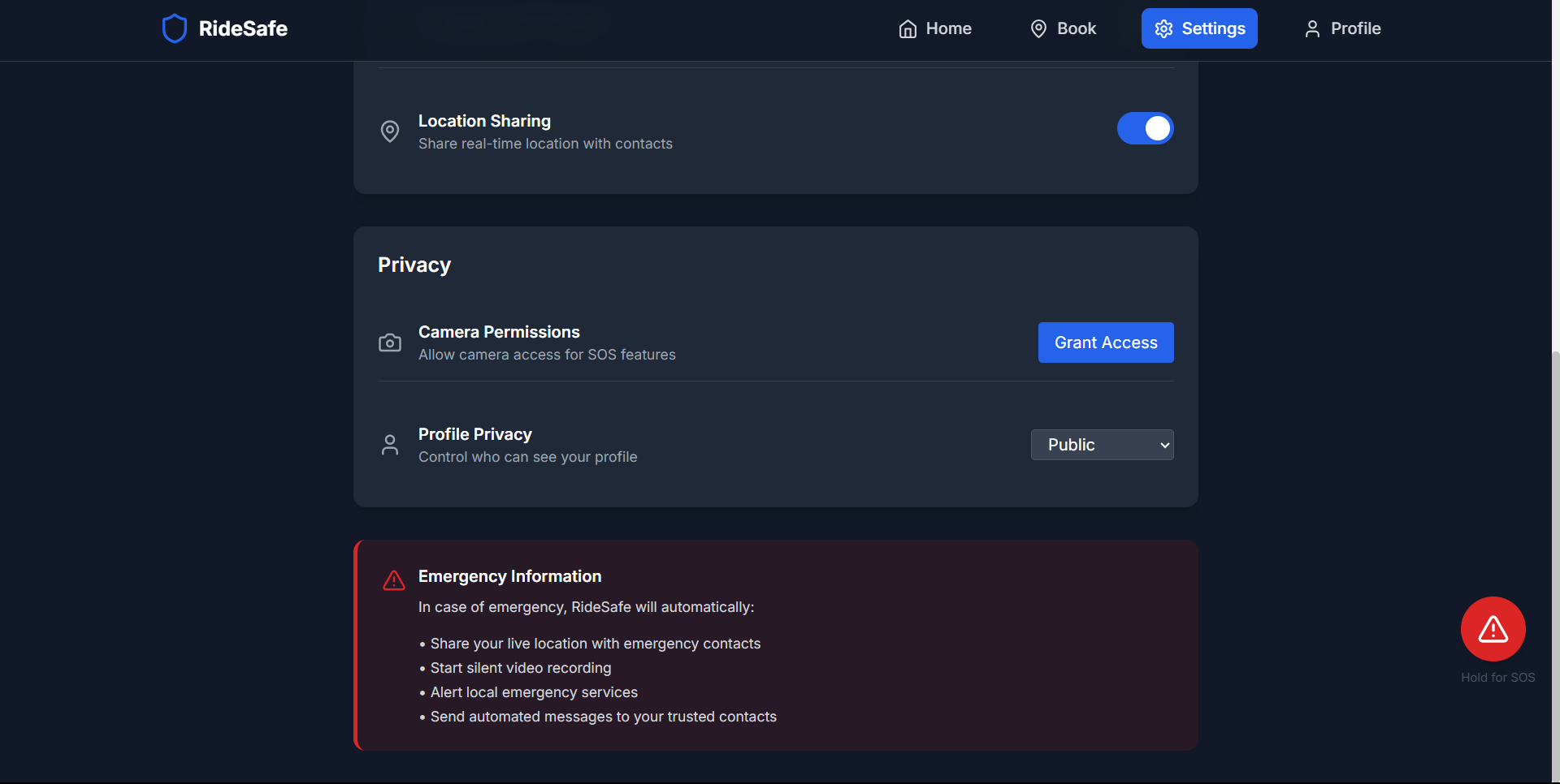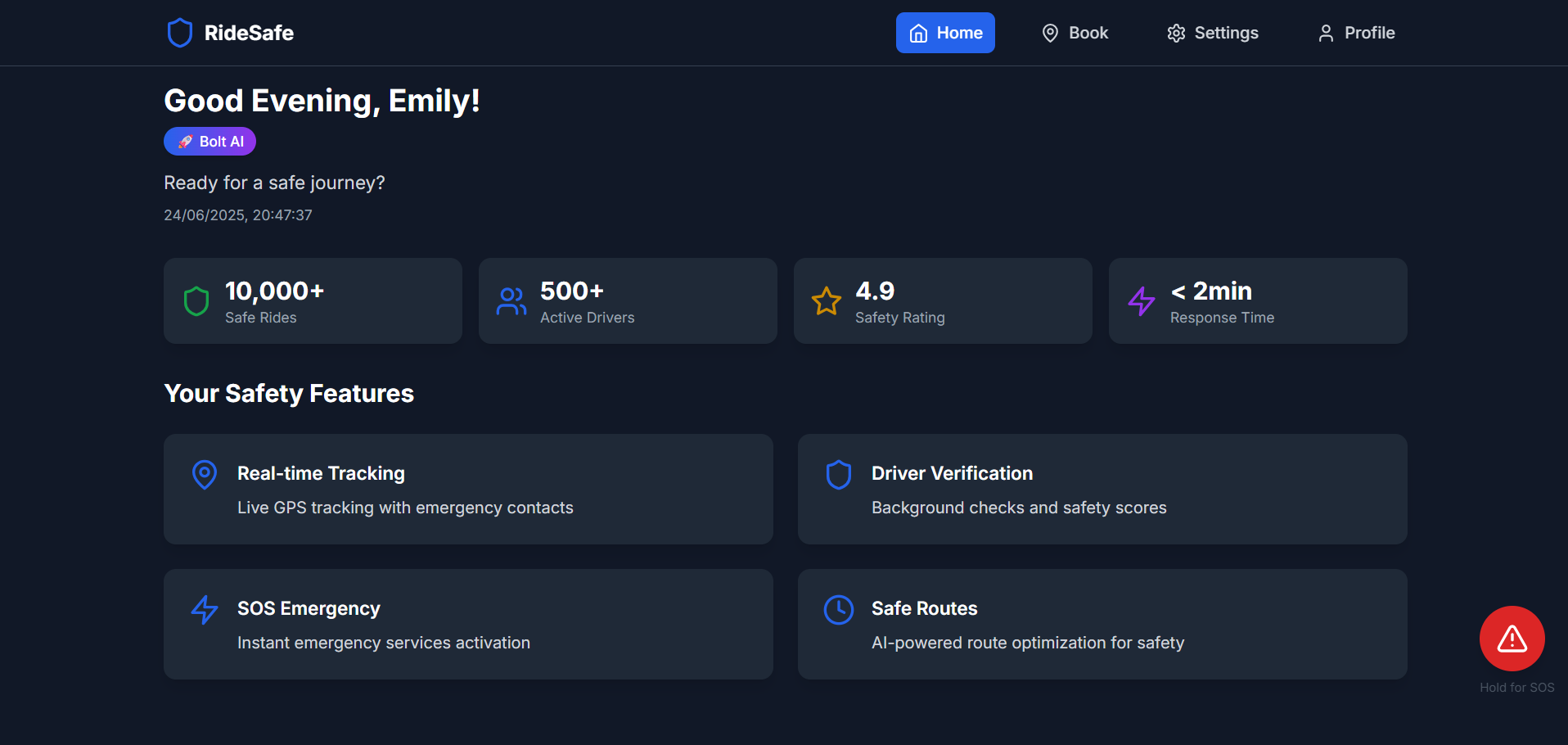 In a world where ride-sharing is a daily necessity, safety — especially for women — often takes a back seat. We set out to change that. RideSafe was born out of a shared frustration with unsafe, unreliable, and impersonal ride-sharing experiences. As a team of three students passionate about technology and design, we decided to build more than just another booking platform — we wanted to create a solution that feels secure, reacts fast, and looks real. Built entirely using Bolt.new, RideSafe combines responsive frontend design with a robust backend, delivering a fully functional web application that simulates real-time booking and puts safety at the center of every ride. We didn’t stop at just mapping routes or listing drivers. We focused on features that actually matter when someone is vulnerable or in a rush: SOS alerts that activate GPS and the camera silently Voice-activated emergencies using secret phrases Verified driver filters by gender and Safe Driver Score OTP validation for both pickup and drop And even an "Imposter Detected" easter egg for wrong OTPs. The UI is clean, modern, and production-ready — with dark/light themes, transitions, and real interactions that respond instantly. Nothing is static or fake — every button and flow is built to simulate how a real product should behave.
