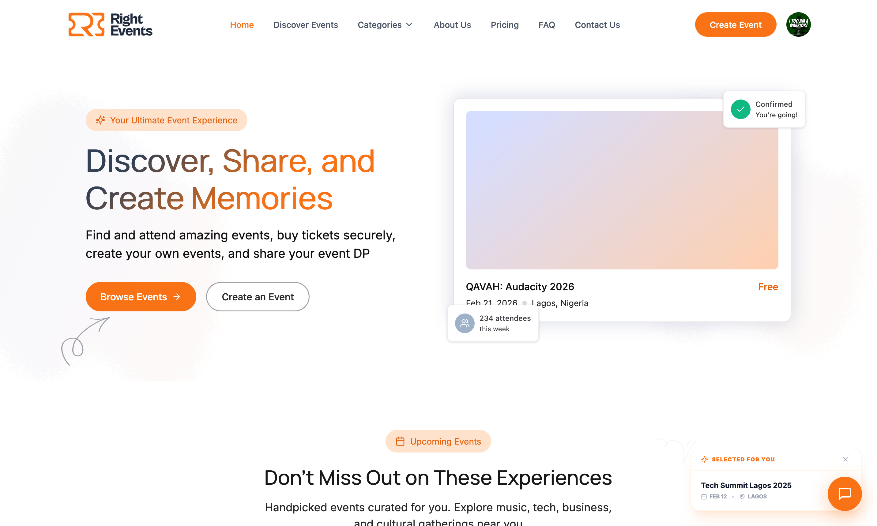 Right Events started from a simple frustration: it’s hard for organizers to run events with the same operational rigor you see in tech startups. I wanted to build a platform that feels modern for attendees and genuinely helpful for organizers, not just another ticketing tool. The inspiration came from watching teams juggle spreadsheets, WhatsApp threads, and last-minute surprises. The goal was to centralize events, operations, marketing, and attendee experience into one system.