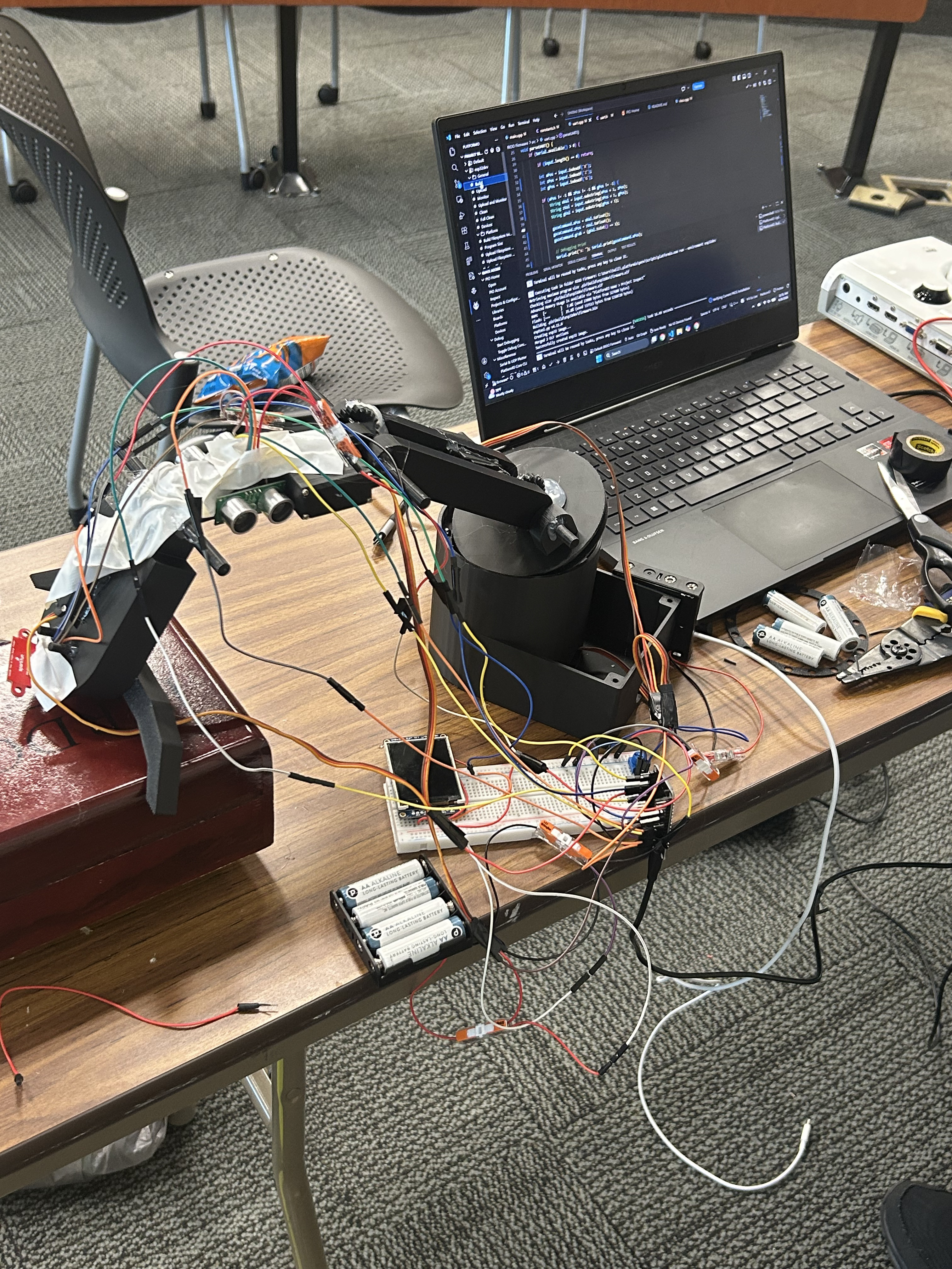 We are incredibly proud that we did not use a single kit for this build. Every gear, joint, and sensor mount was calculated and designed by our team in a single day. Solving the complex gear math for such a small scale assembly and implementing a full safety suite with ultrasonics and ToF sensors was a huge win. Building a working prototype that solves a real accessibility challenge using only raw materials and custom firmware feels like a major milestone for our team.