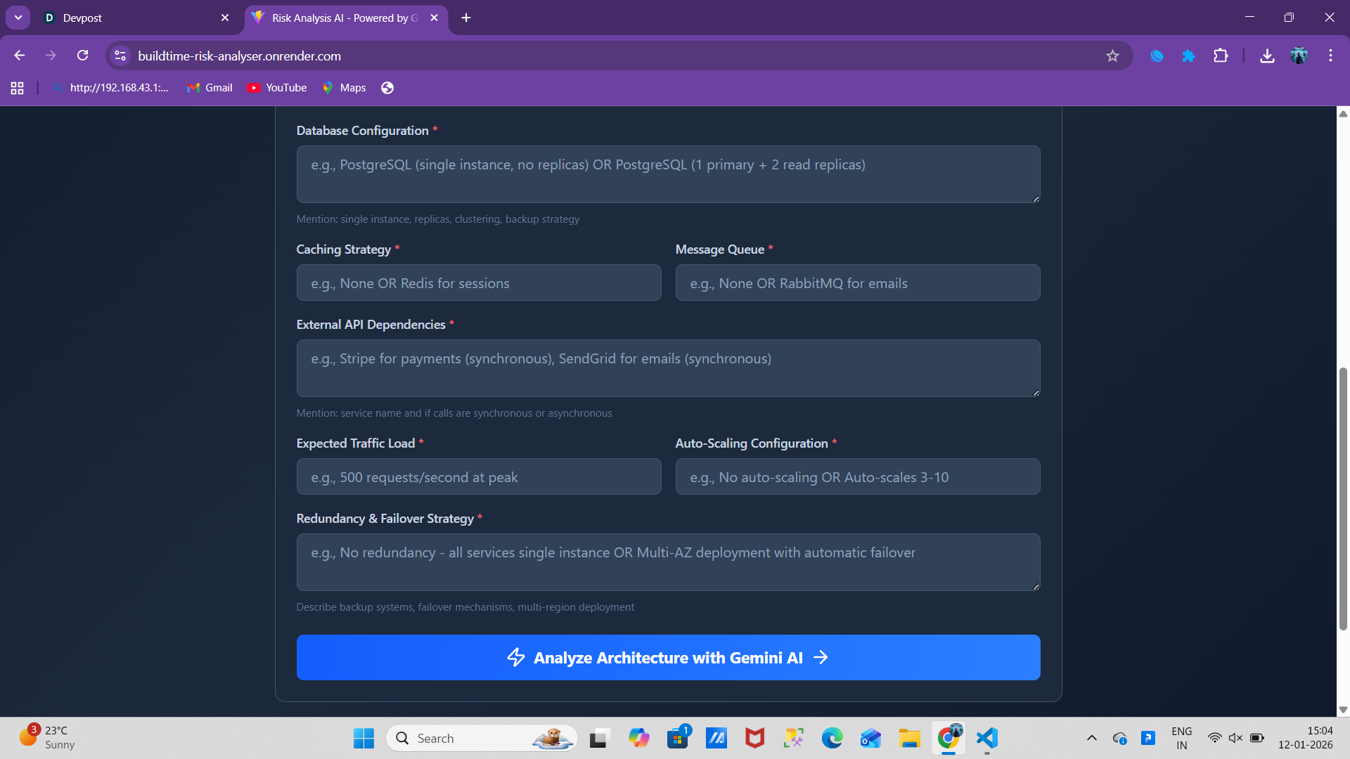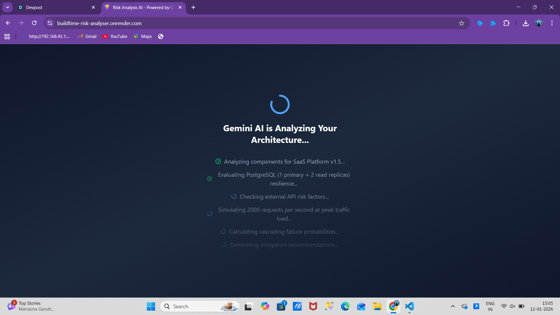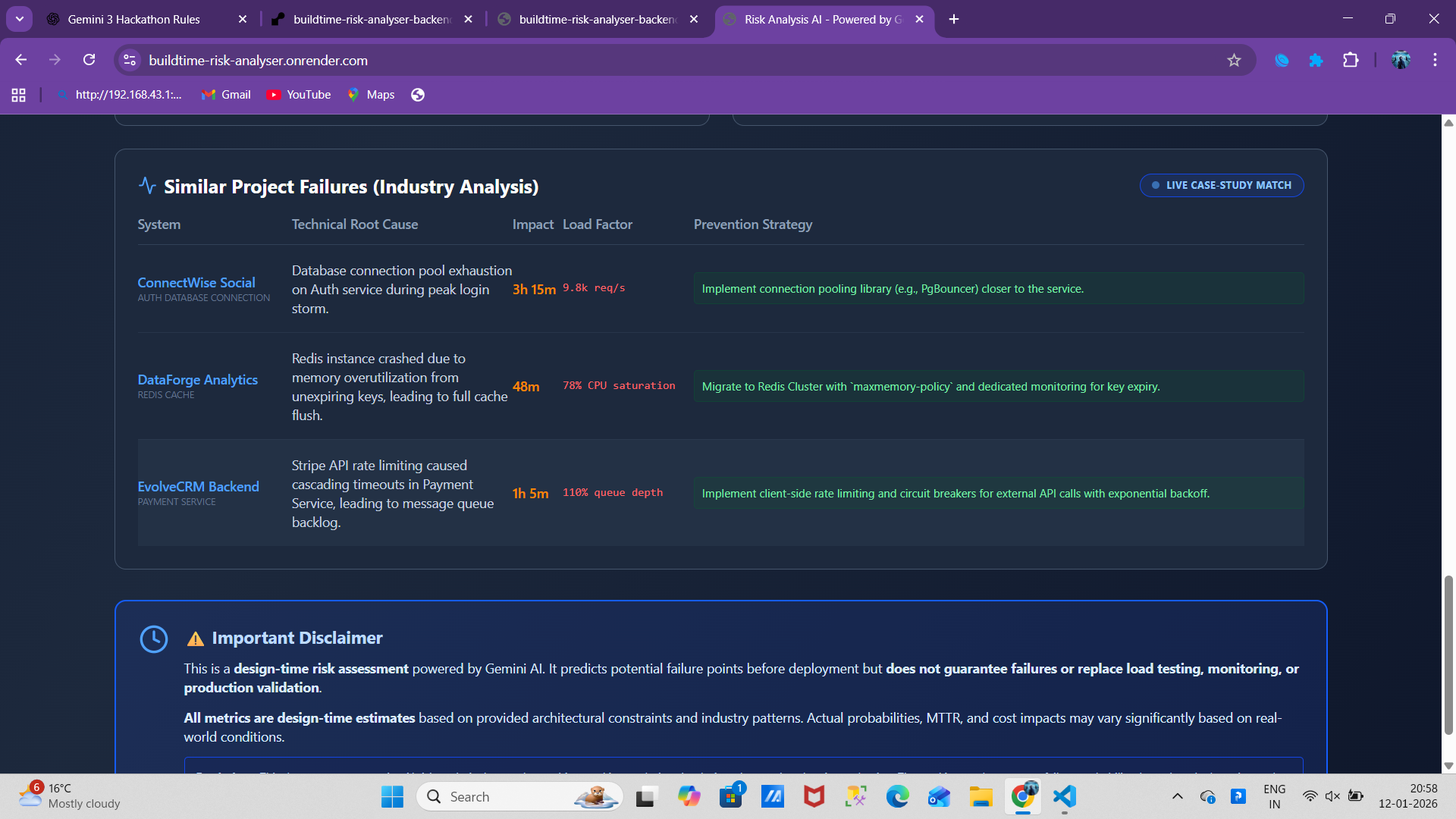 RiskGuard AI is an intelligent system that analyzes software architecture and predicts potential failures before you deploy to production. Think of it as a "pre-mortem" for your system design, powered by Google's Gemini 2.5 Flash AI.