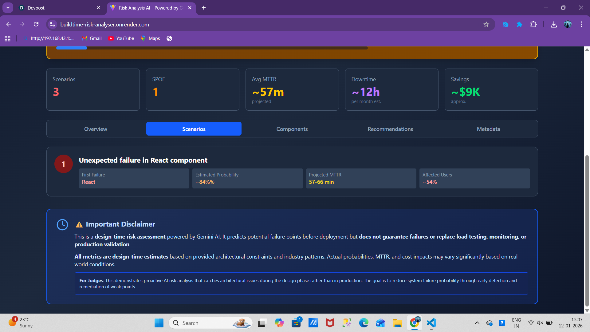 RiskGuard AI was born from this realization - to democratize architectural risk analysis and make it accessible to every developer, not just Fortune 500 companies with dedicated Site Reliability Engineering teams.