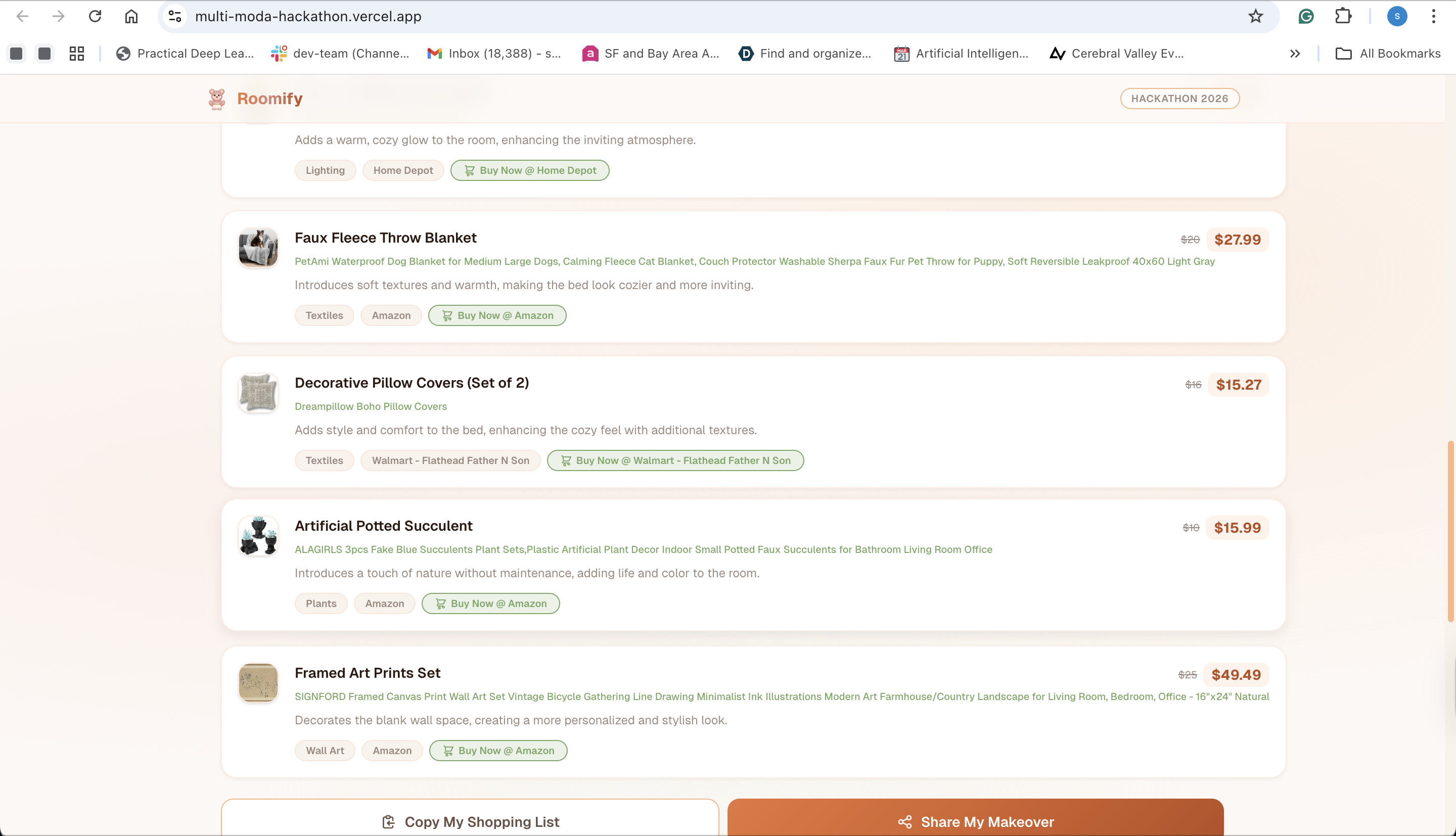 We tested the app on various room types, including my own personal room, and it consistently generated useful and practical recommendations. We’re proud that it not only suggests improvements but also provides exact items users can buy to achieve the transformation.