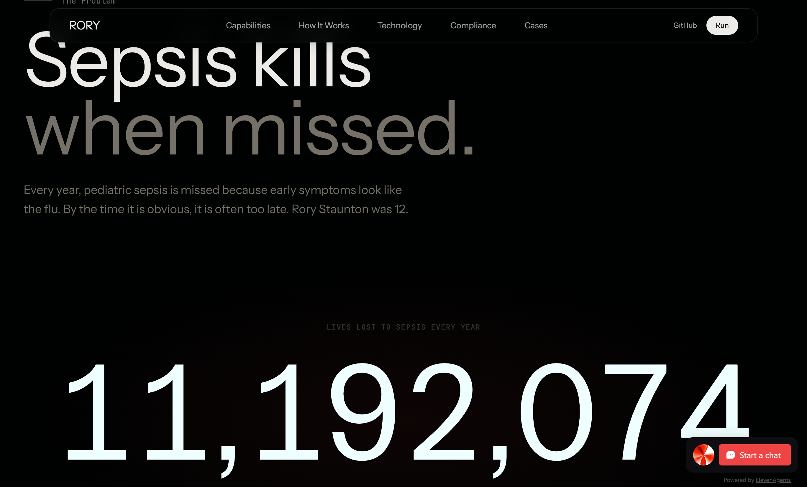 11 million people die from sepsis every year. Most of them showed symptoms that looked like the flu. We built RORY so the next time a child walks into a school nurse's office or an ER with vague symptoms, the system catches what the eye might miss.