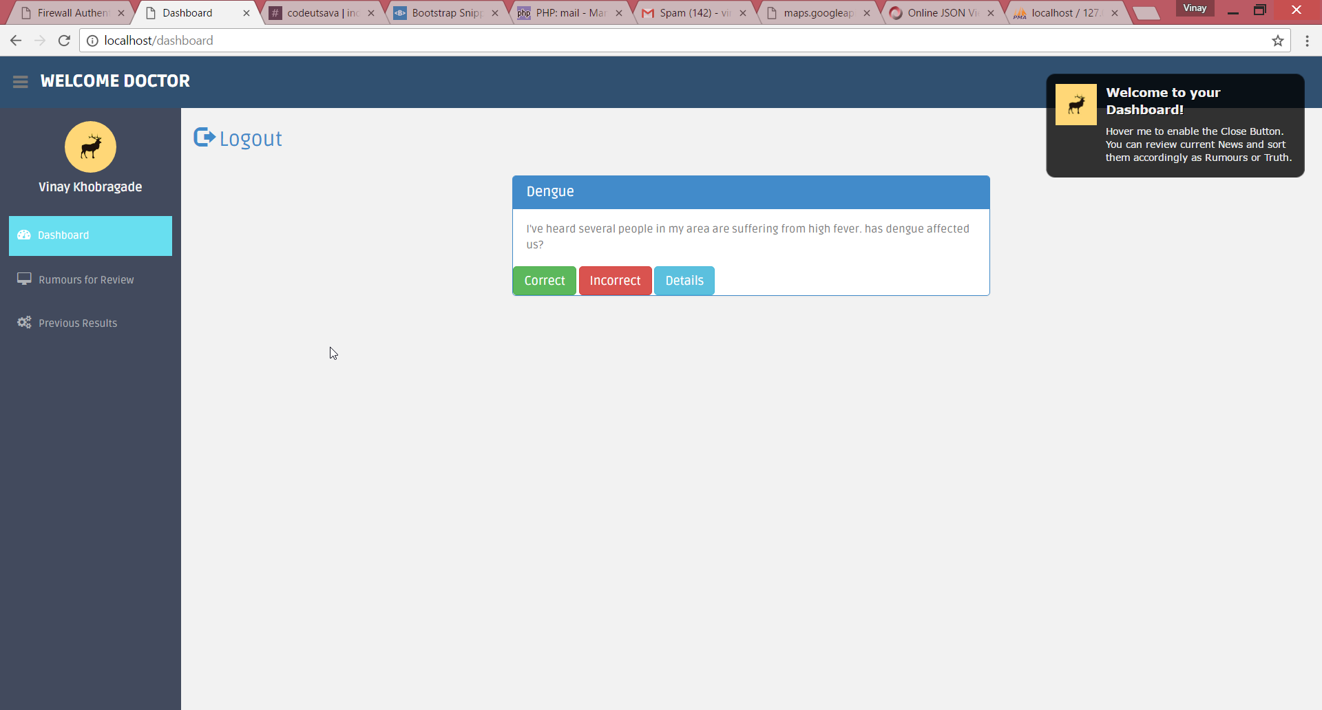 What it does - It takes rumors from users that they are hearing around them and our doctors will filter them accordingly as they know better.