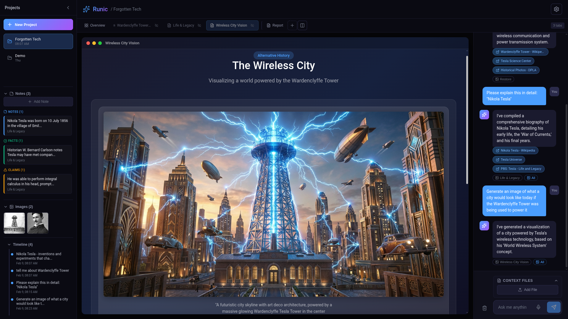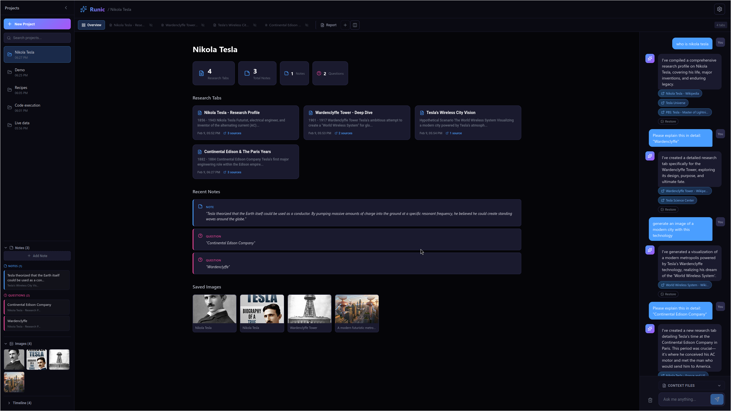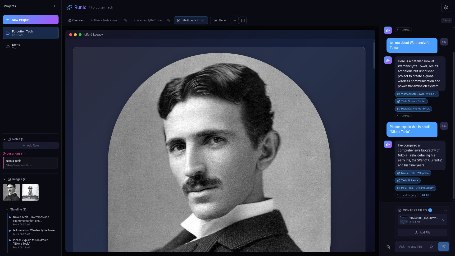 Massive Context Window: Runic utilizes the large context window to hold "Snapshots" of entire research sessions, allowing users to pivot between topics without the AI losing the thread.