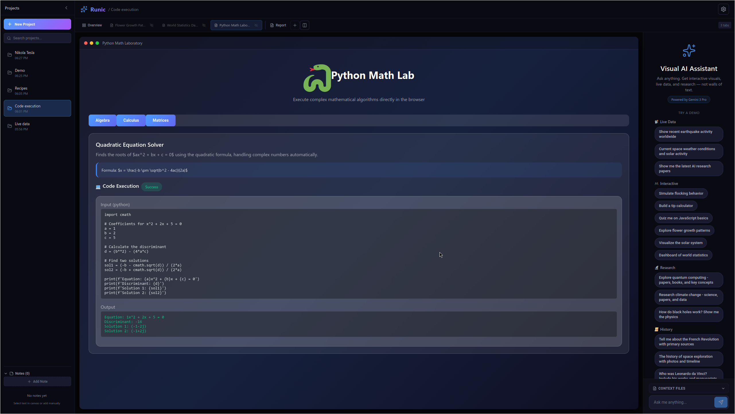 Using Gemini interactions API to execute Python code for complex problems