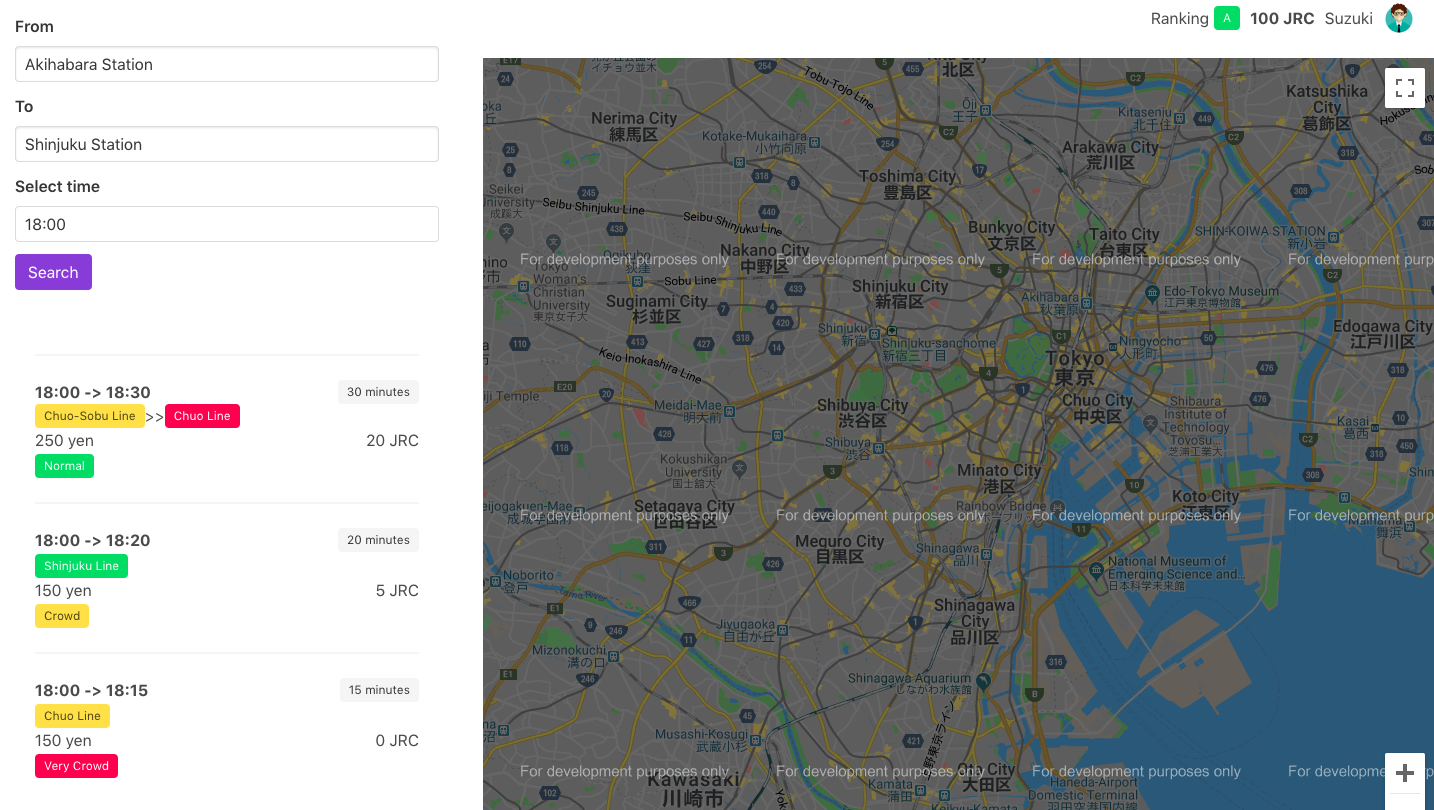 混雑時間を解消するために行動した人たちの貢献度の可視化する世界を実現