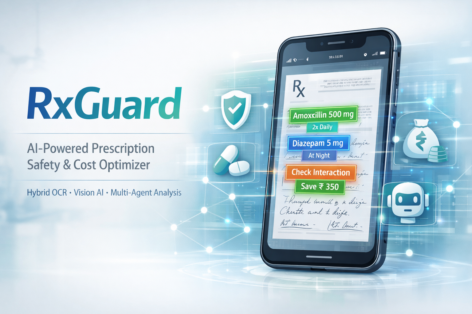 Hybrid OCR: PaddleOCR for printed text, Novita Qwen 2.5 VL for handwriting Safety Agent: Detects dangerous drug interactions Compliance Agent: Validates WHO prescription standards Cost Optimizer: Finds cheapest generic alternatives with real Pakistani prices