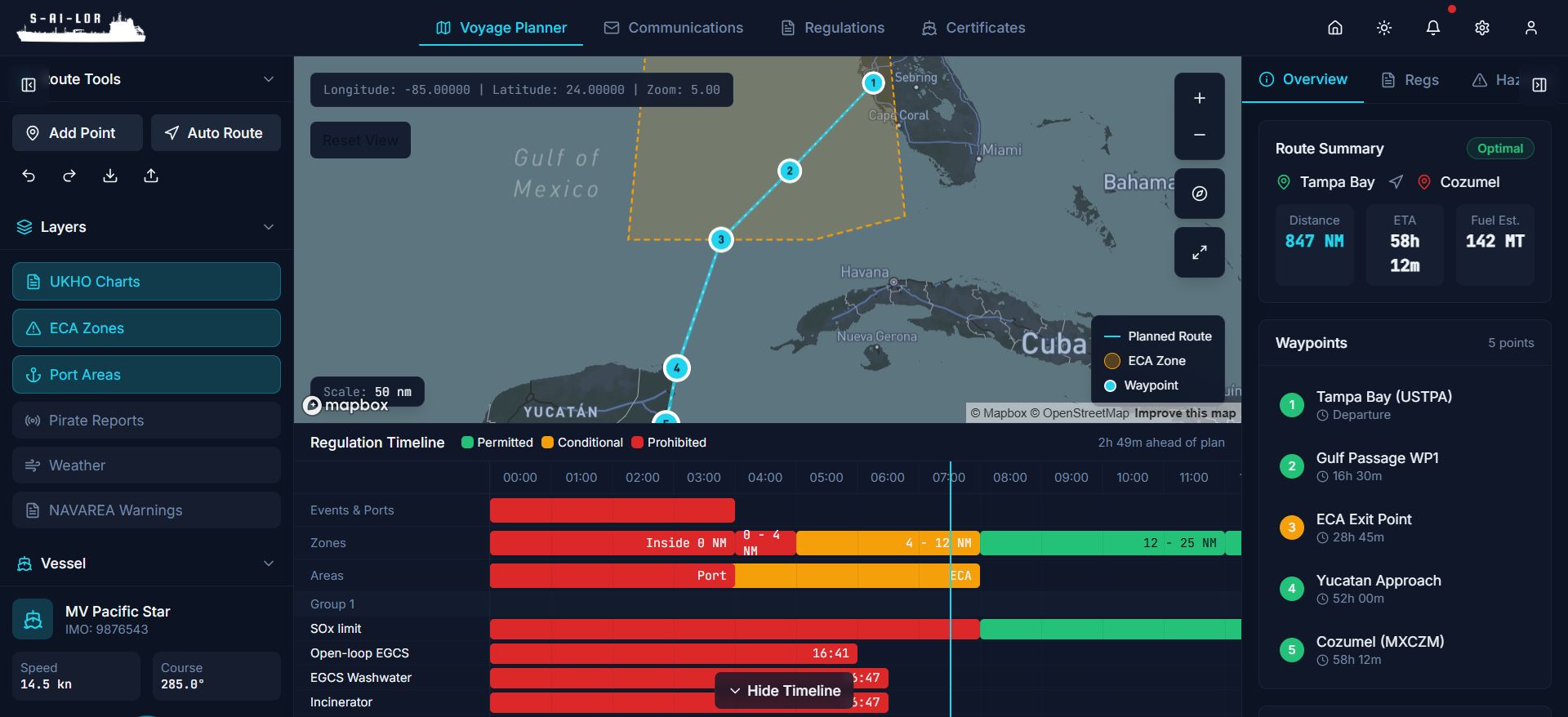 s-Ai-lor is an AI-powered maritime operations assistant that centralizes voyage planning, operational workflows, and regulatory intelligence. It enables officers to manage plans, retrieve internal SOPs and international regulations through an AI assistant, and receive contextual guidance—reducing operational friction, errors, and cognitive load.