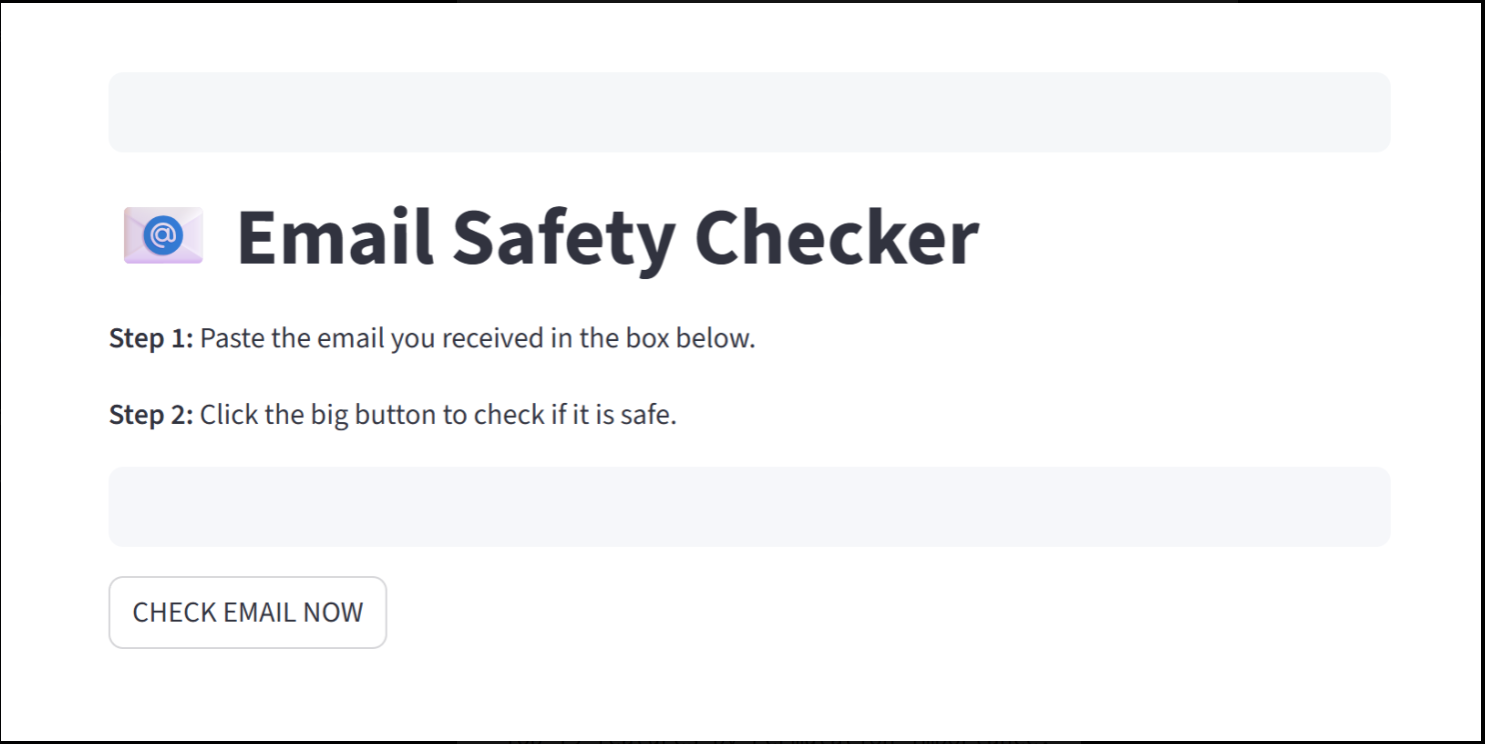 What it Does S.C.A.M.S. is a web application designed specifically for older adults. The interface is very easy to navigate. A user simply pastes the contents of a suspicious email into the app, and our system analyzes the text for: Urgency/Fear-based language (e.g., "Your account will be closed in 2 hours"). Suspicious Metadata and linguistic patterns common in scammers. Fraudulent Links disguised as official URLs.