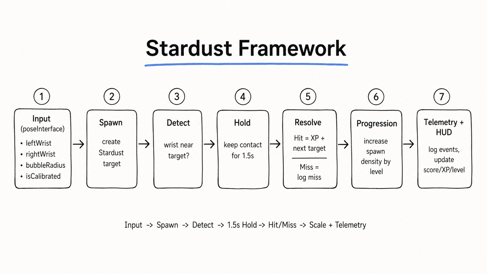 S-tardus-T is an AI-powered physical therapy game where children use their body movements, captured through a webcam, to control a spaceship. Players reach for stardust and avoid obstacles, helping improve mobility while having fun. After each session, the system generates a report for therapists based on the user's movements.