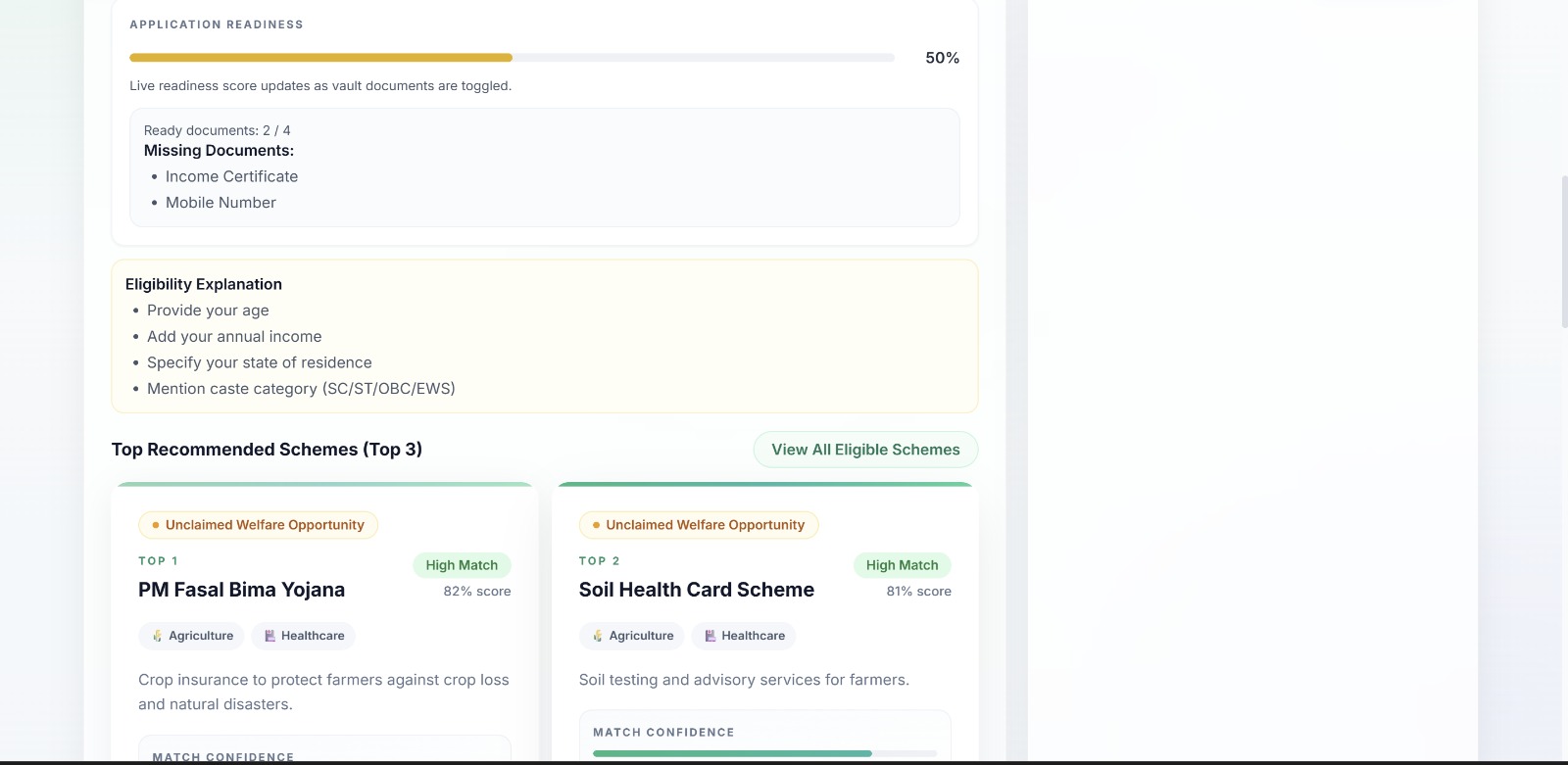 Another challenge was explaining eligibility clearly. It’s easy to match schemes, but harder to explain why someone qualifies.