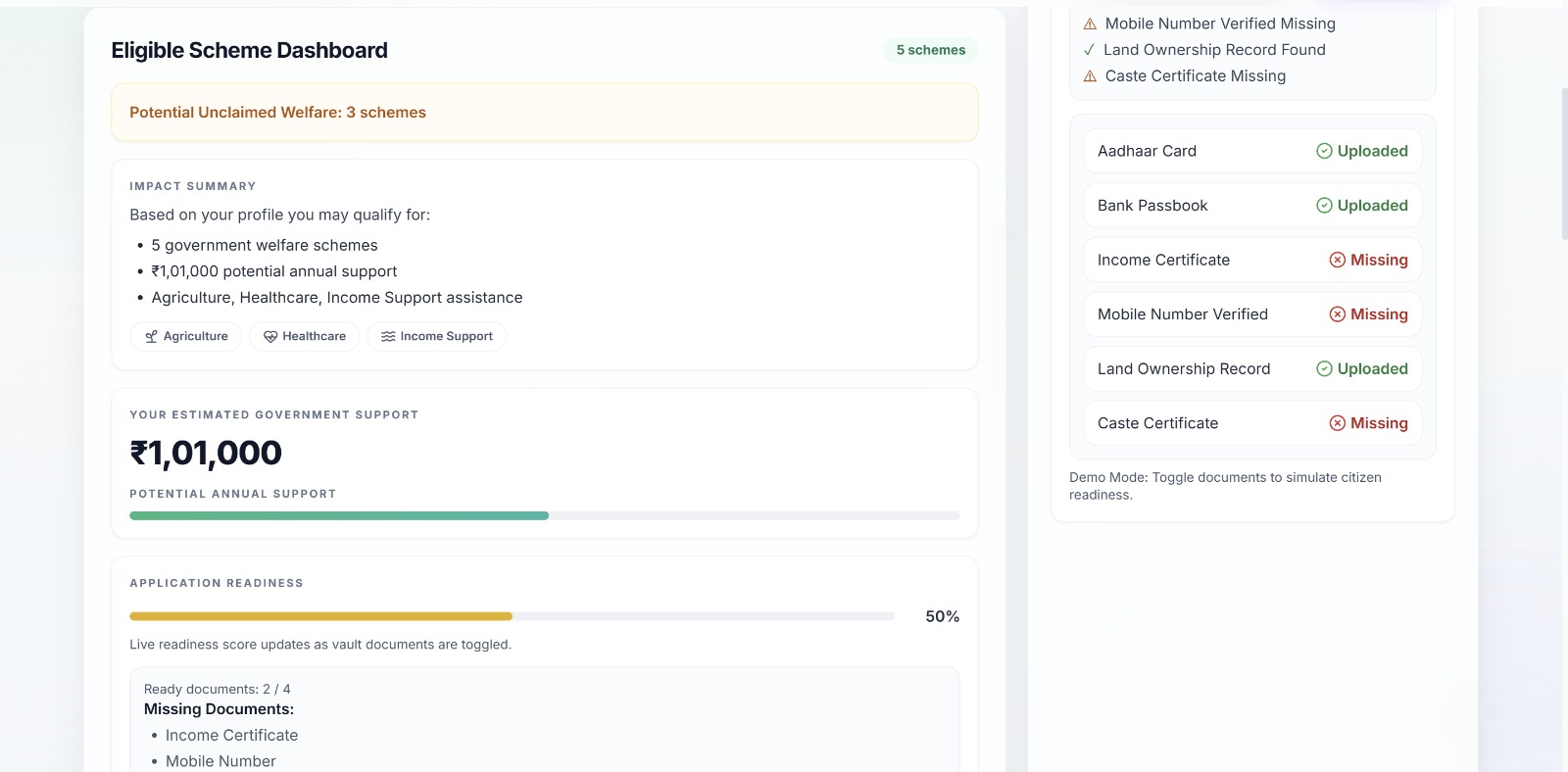 We realized the issue isn’t the lack of schemes — it’s the gap between information and actual access.